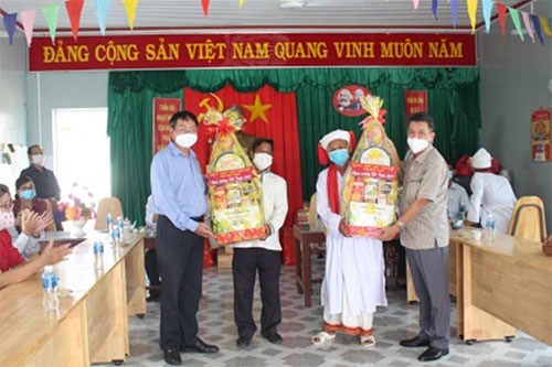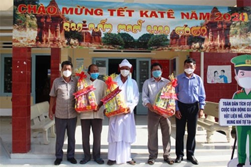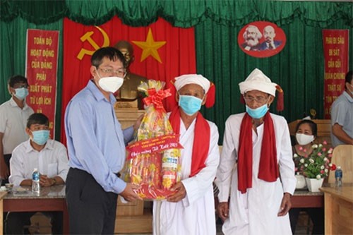 Từng nơi đến thăm, ông Nguyễn Minh Tân cùng đại diện lãnh đạo Ban Tôn giáo tỉnh đã gửi những phần quà, lời chúc Tết của lãnh đạo Tỉnh ủy, UBND tỉnh đến các vị chức sắc tôn giáo, người có uy tín, chúc đồng bào Chăm ở 2 huyện Bắc Bình, Tuy Phong đón Tết Ka Tê năm 2021 vui tươi, đầm ấm, an toàn trong điều kiện dịch Covid- 19. Động viên đồng bào tiếp tục phát huy các truyền thống tốt đẹp của dân tộc, góp sức cùng địa phương nỗ lực hoàn thành tốt các nhiệm vụ, chỉ tiêu kế hoạch phát triển kinh tế - xã hội năm 2021, thực hiện nghiêm các biện pháp phòng chống dịch Covid- 19.