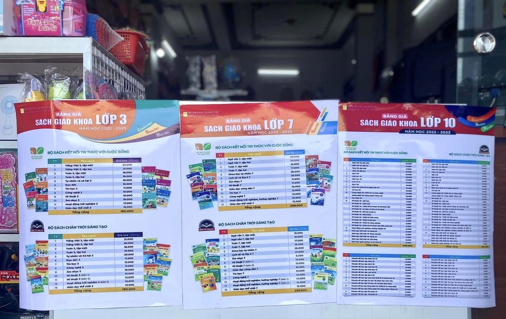 Năm nay, NXB Giáo dục Việt Nam công khai giá sách các lớp 3, 7, 10, với hai bộ "Kết nối tri thức với cuộc sống" và "Chân trời sáng tạo" sử dụng cho năm học 2022-2023, mức giá tiếp tục cao hơn từ hai đến ba lần so với bộ sách hiện hành.