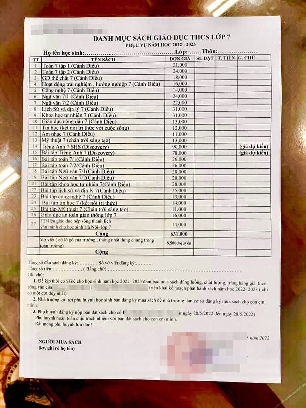 Chị Nguyễn Thị Hiên (40 tuổi, Hà Nội) có hai con đang học lớp 2 và lớp 7. Năm nào chị cũng phải mua 2 bộ sách theo đơn đăng ký với nhà trường, giá khoảng 600.000 - 800.000 đồng mỗi bộ.