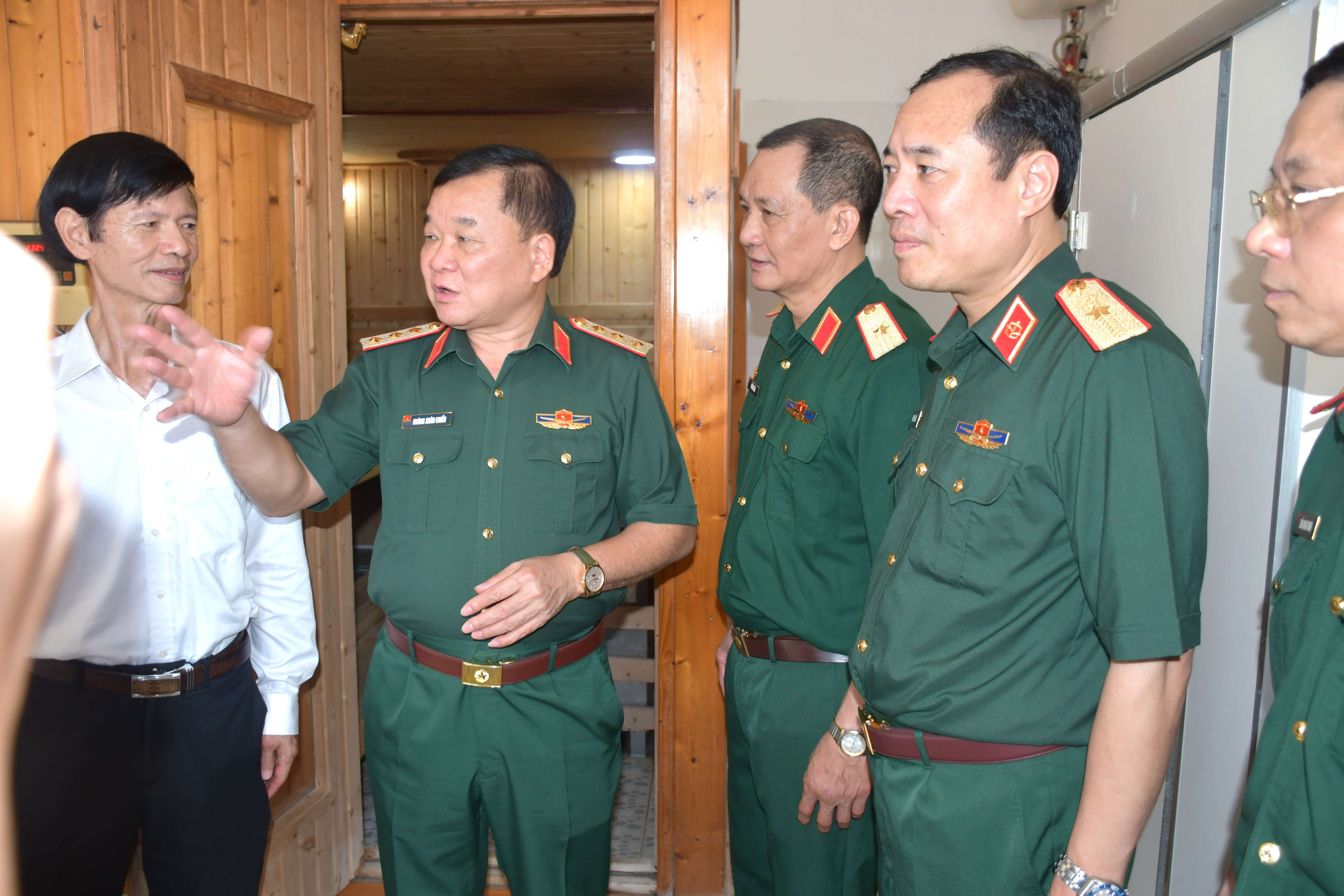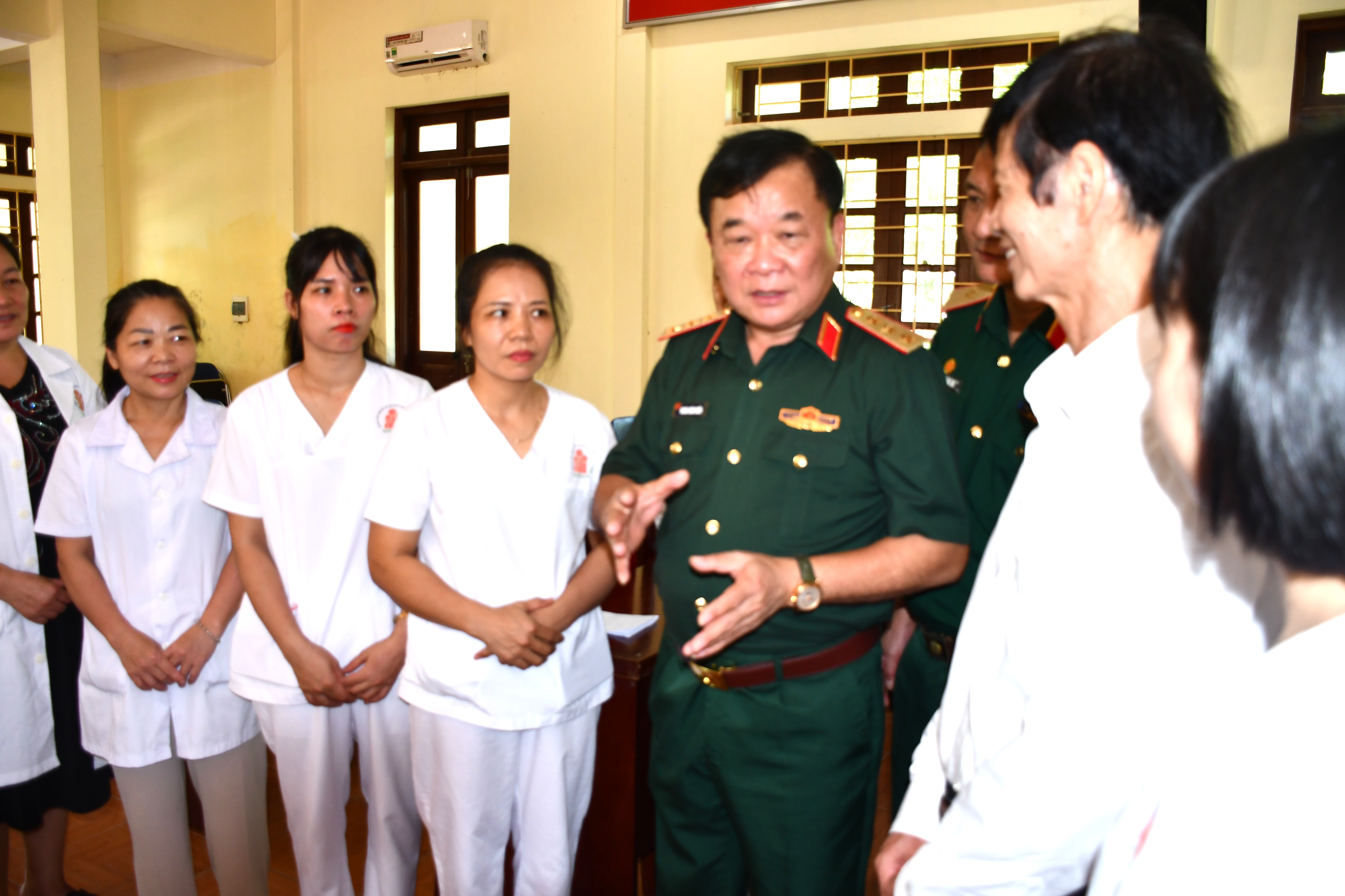 Thiếu tướng Đỗ Hồng Lâm báo cáo khái quát kết quả hoạt động của Trung tâm và đề nghị Bộ Quốc phòng tiếp tục quan tâm, hỗ trợ nâng cấp cơ sở phục hồi chức năng, cải thiện điều kiện hậu cần, nhằm phục vụ tốt hơn công tác chăm sóc, phục hồi sức khỏe cho nạn nhân chất độc da cam đang được chăm sóc tại Trung tâm.