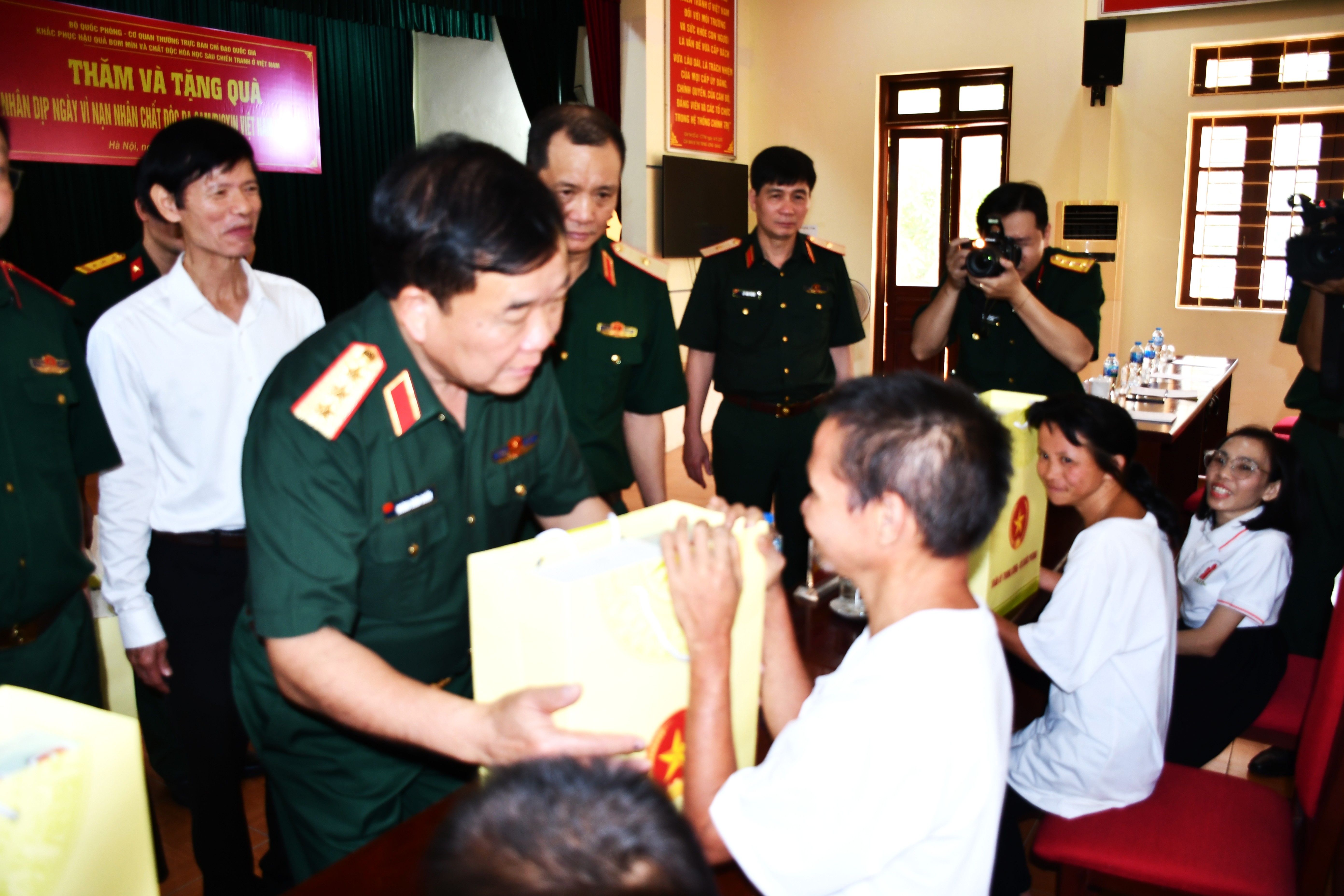 Nhân dịp này, Đoàn công tác Bộ Quốc phòng đã trao tặng Trung tâm nhiều phần quà (gồm hiện vật và 50 triệu đồng tiền mặt). Thượng tướng Hoàng Xuân Chiến trực tiếp trao tận tay 20 suất quà (mỗi suất trị giá 2,5 triệu đồng) cho các nạn nhân.