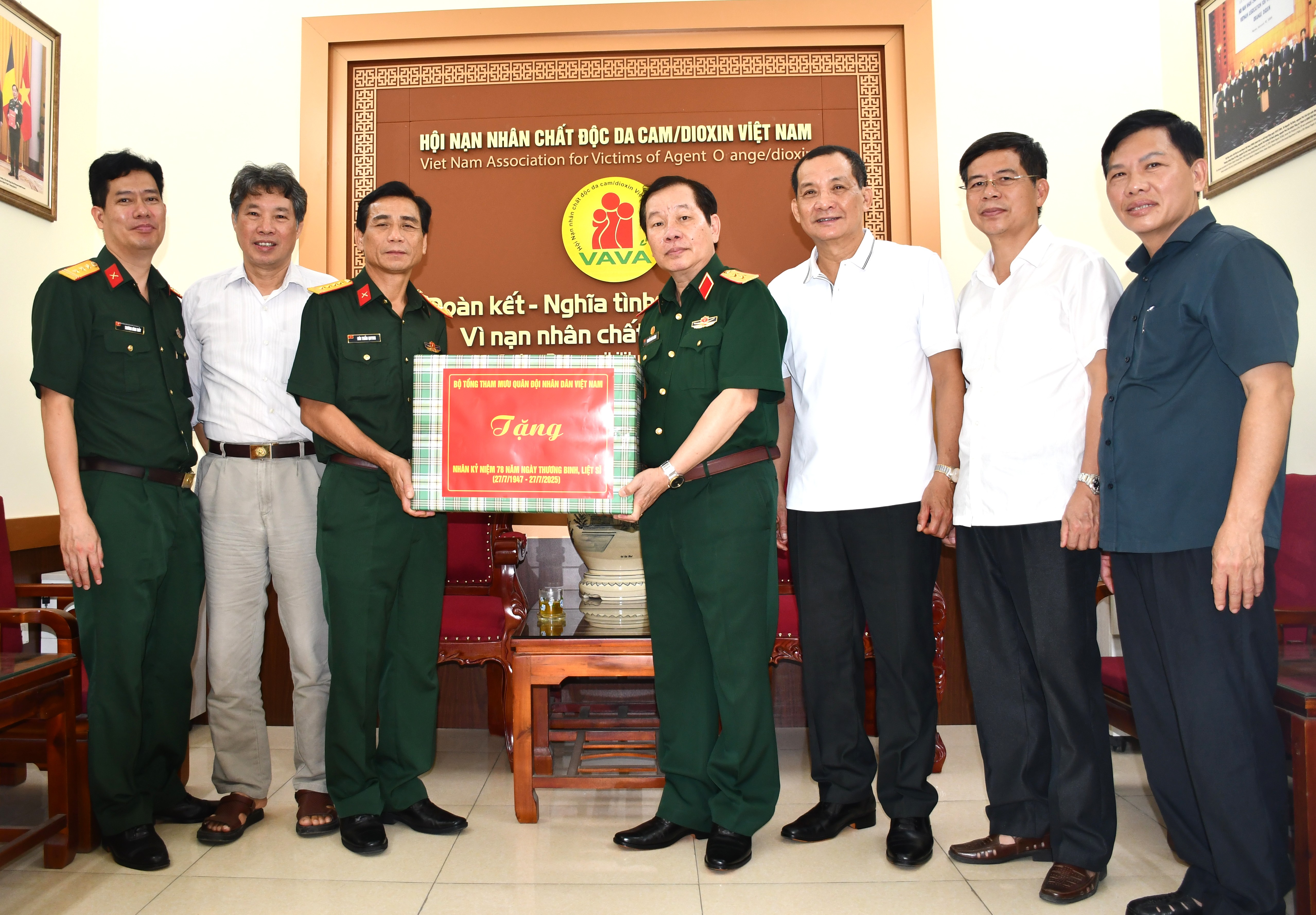 Nhân dịp kỷ niệm 78 năm Ngày Thương binh - Liệt sĩ (27/7/1947 – 27/7/2025), ngày 18/7/2025, được sự ủy quyền của Thủ trưởng Bộ Tổng Tham mưu Quân đội nhân dân Việt Nam, Đại tá Bùi Tuấn Quynh – Phó Chủ nhiệm Chính trị Bộ Tổng Tham mưu, Cơ quan Bộ Quốc phòng – đã đến thăm và tặng quà Trung ương Hội Nạn nhân chất độc da cam/dioxin Việt Nam.