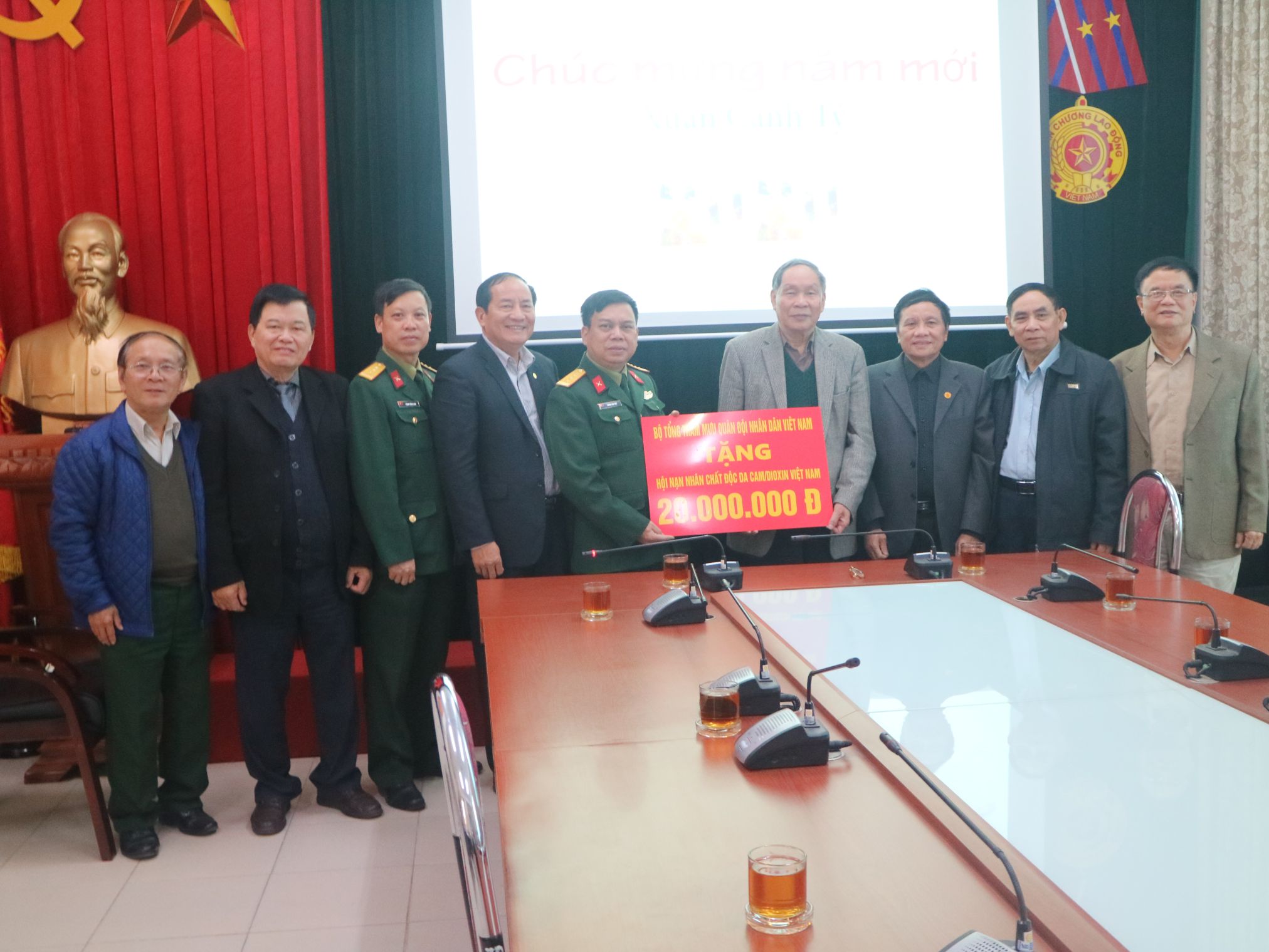 Thượng tướng Nguyễn Văn Rinh, Chủ tịch Hội NNCĐDC/dioxin Việt Nam phát biểu: trong thời gian qua, Hội NNCĐDC/dioxin Việt Nam nhận được sự quan tâm của Đảng, Nhà nước của các tổ chức và cá nhân trên phạm vi cả nước và của cộng đồng người Việt Nam đang sinh sống ở nước ngoài. Tối ngày 15/01/2020 sẽ tổ chức Chương trình Truyền hình trực tiếp để tri ân những tổ chức, cá nhân đã hỗ trợ, giúp đỡ NNCĐDC. Đồng chí ghi nhận tấm lòng của cán bộ, chiến sĩ BTTM đã quan tâm đến NNCĐDC. Thay mặt Trung ương Hội, Đồng chí gửi lời cảm ơn và chúc tết đến Thủ trưởng BTTM./.