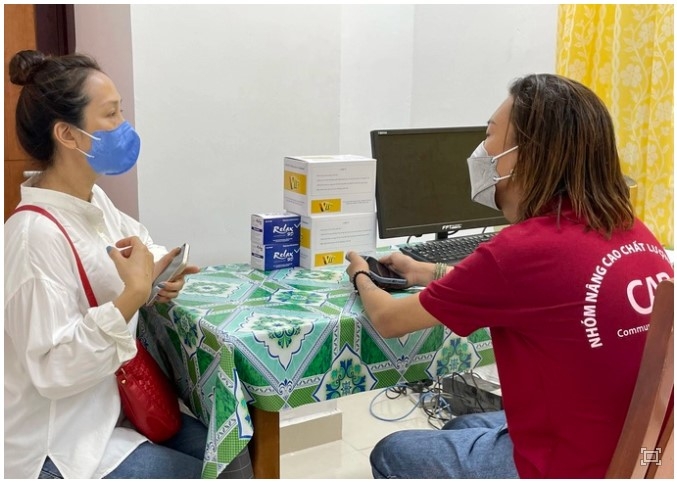 | Chia sẻ của một người đồng tính nam (áo đỏ) với phóng viên về các hoạt động hỗ trợ người nhiễm HIV |