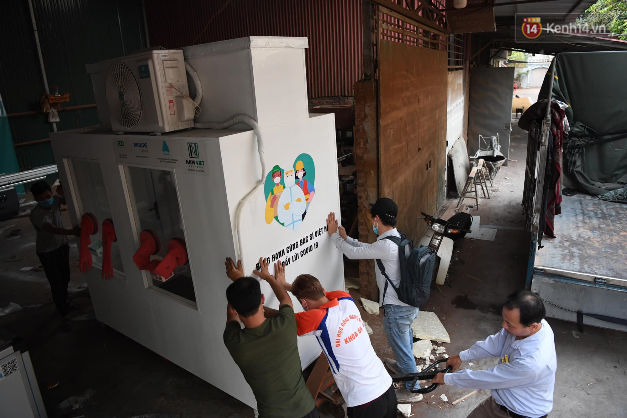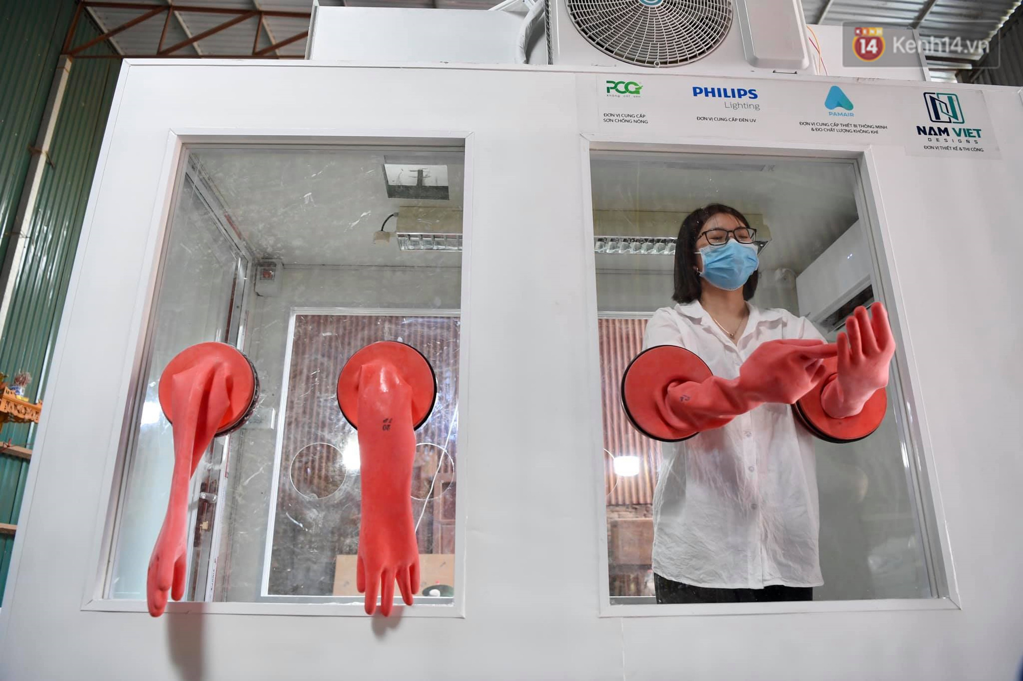 Sau 100 giờ liên tục thực hiện của đội ngũ thi công, buồng xét nghiệm được hoàn thiện và đưa vào thử nghiệm tại tâm dịch
