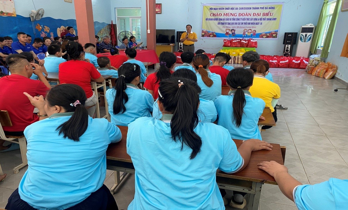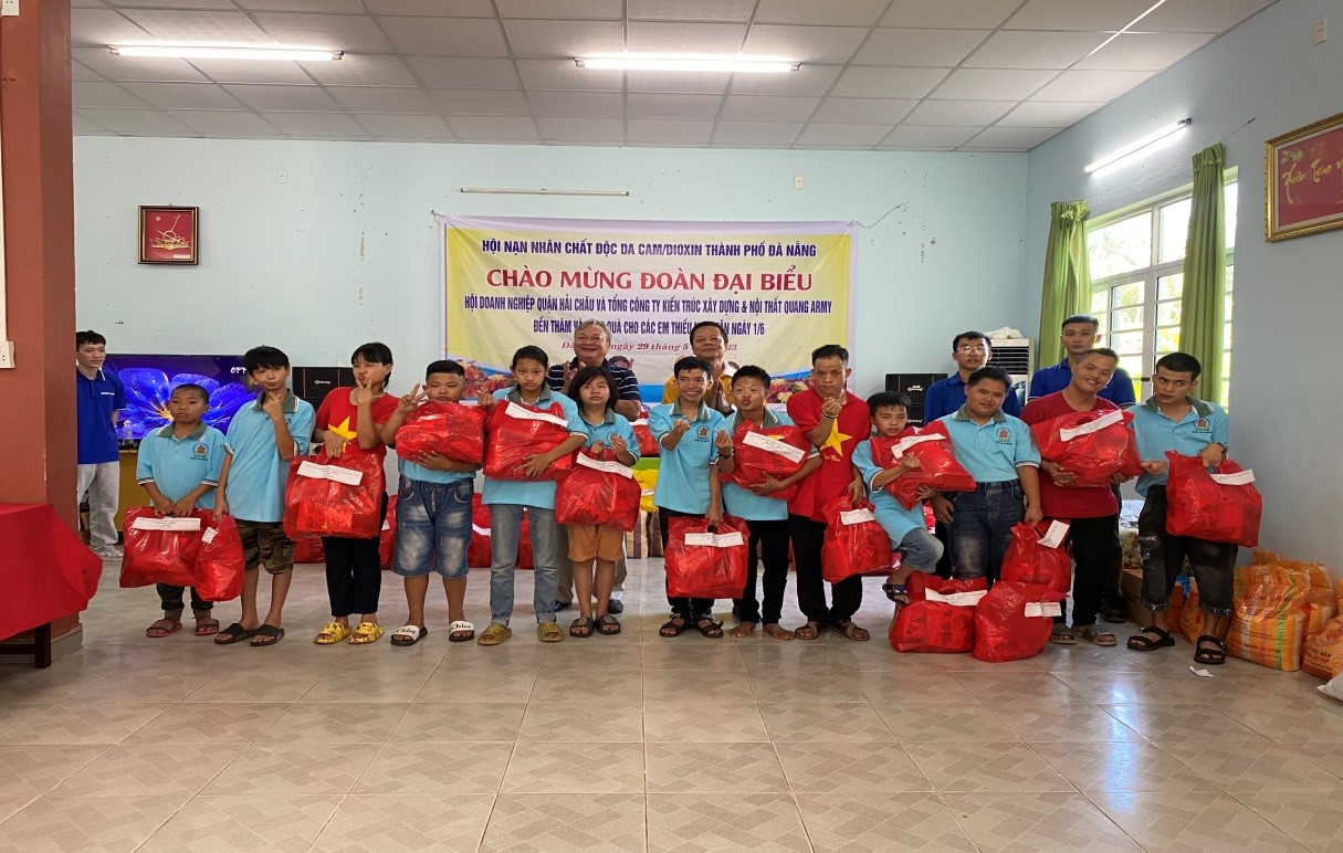 Nhân dịp ngày Quốc tế Thiếu nhi-1/6, chiều 29/5/2023 Hội Doanh nghiệp quận Hải Châu, thành phố Đà Nẵng đã phối hợp với Tổng Công ty Kiến trúc xây dựng và Nội thất Quang Amy tổ chức thăm và tặng quà cho nạn nhân chất độc da cam đang sinh hoạt, học tập tại Trung tâm Bảo trợ Nạn nhân chất độc da cam và trẻ bất hạnh TP. Đà Nẵng.