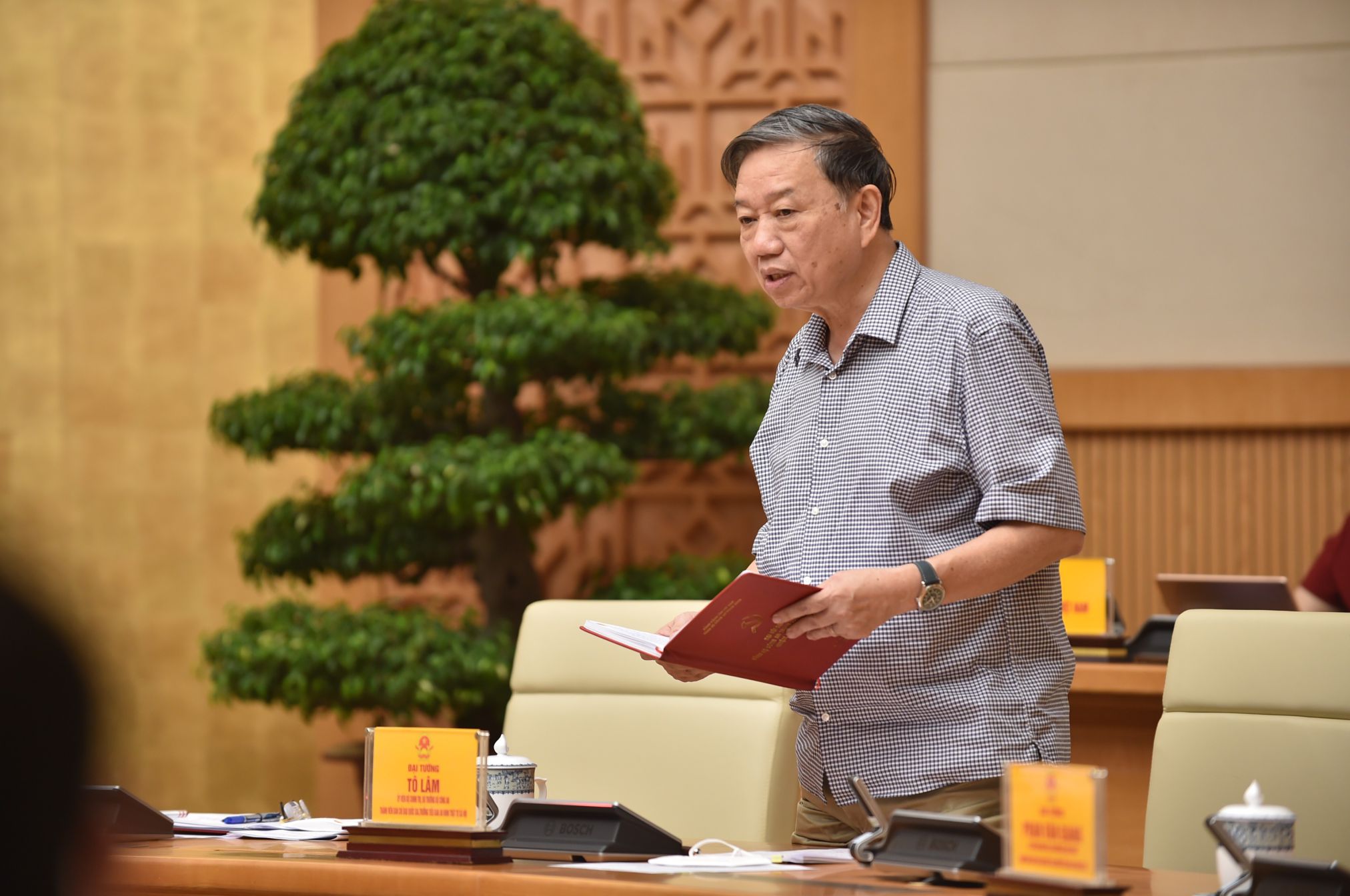 Bộ trưởng Bộ Công an Tô Lâm phát biểu tại cuộc họp