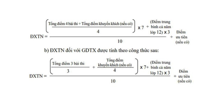 Điểm của từng bài thi được quy ra thang điểm 10 để xét tốt nghiệp. Cụ thể, điểm xét tốt nghiệp sẽ bao gồm: 70% điểm thi THPT và 30% điểm trung bình lớp 12. Điểm xét tốt nghiệp sẽ được lấy đến 2 chữ số thập phân, do phần mềm máy tính tự động thực hiện.