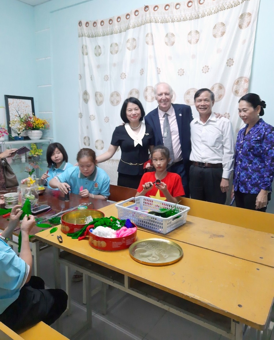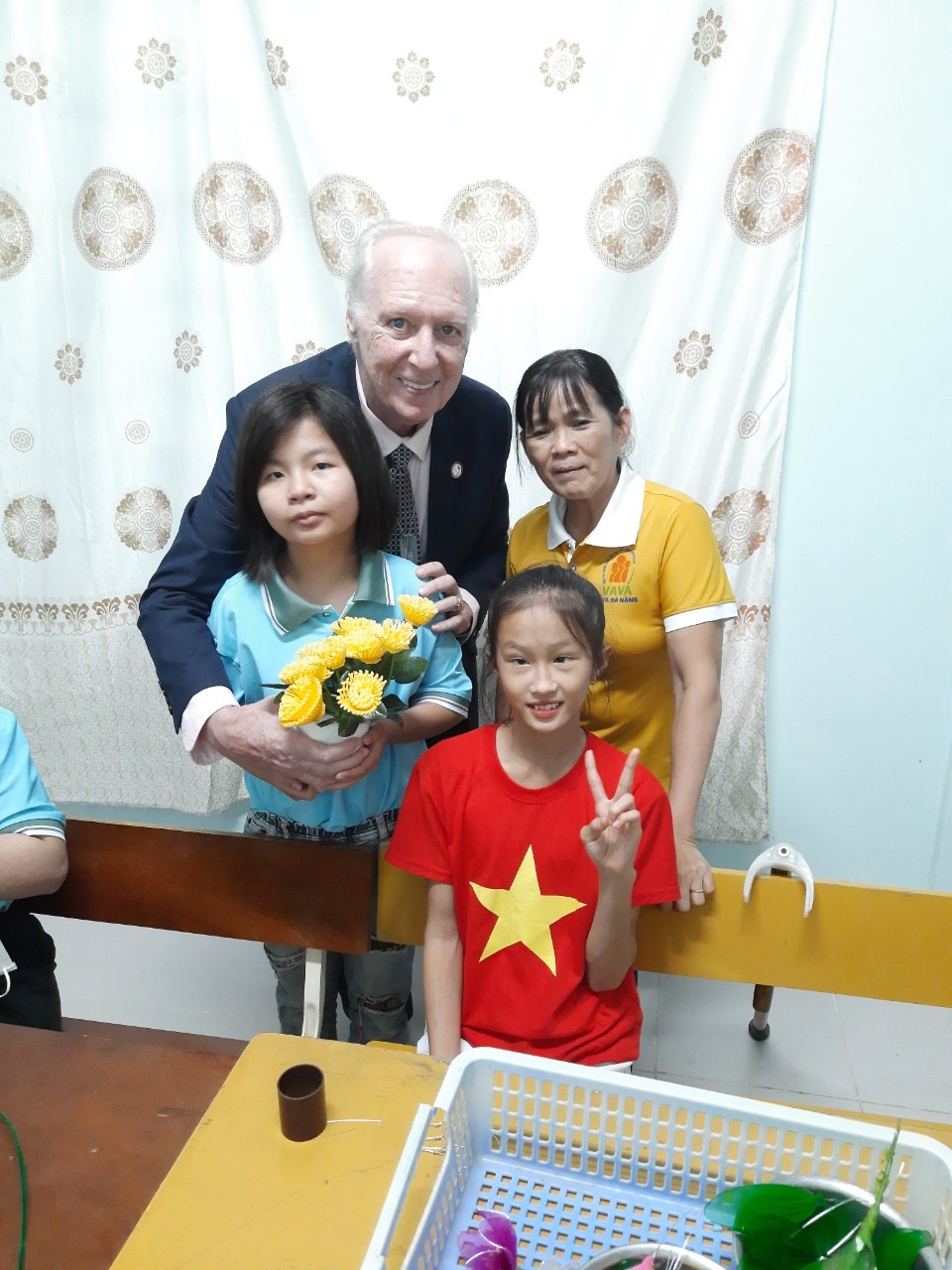 Đến Trung tâm, mọi người chào đón nồng nhiệt, ông cùng tôi đi thăm các phòng nuôi dưỡng và dạy nghề cho trẻ em khuyết tật, nơi ông đã nhiều năm gắn bó. Những đứa trẻ khuyết tật thấy ông đến reo lên tíu tít tặng hoa, tranh nhau bắt tay, thậm chí ôm hôn ông thắm thiết như đón một người thân trở về. Hình ảnh này làm tôi xúc động, cảm nhận rõ tình cảm của các cháu khuyết tật ở Trung tâm này giành cho ông không hề nhỏ.