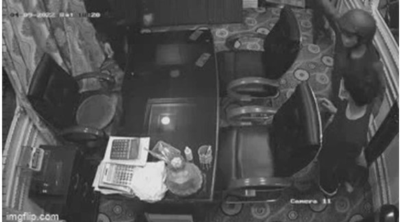 Ngay sau đó, cũng đã có một người đàn ông mặc áo đen theo sau vào trong nhà. Nhóm cướp sau đó dùng dao, búa khống chế, trói tay 3 người trong nhà. Họ uy hiếp cháu S. mở khóa cửa phòng khách để lục tủ lấy tiền bỏ vào ba lô.