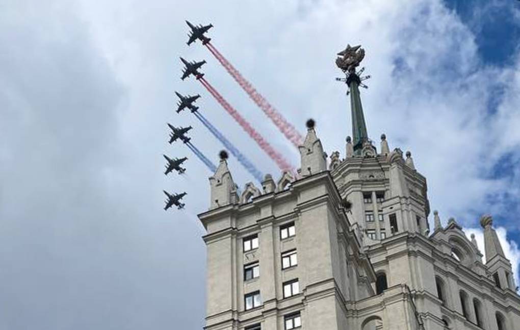 Máy bay trình diễn tạo 3 màu cơ bản trên cờ Nga.
