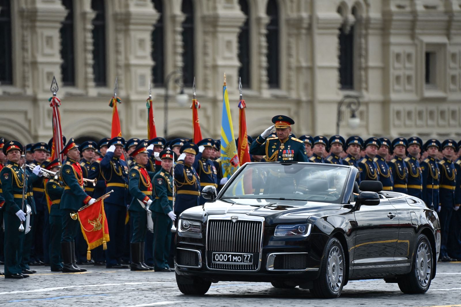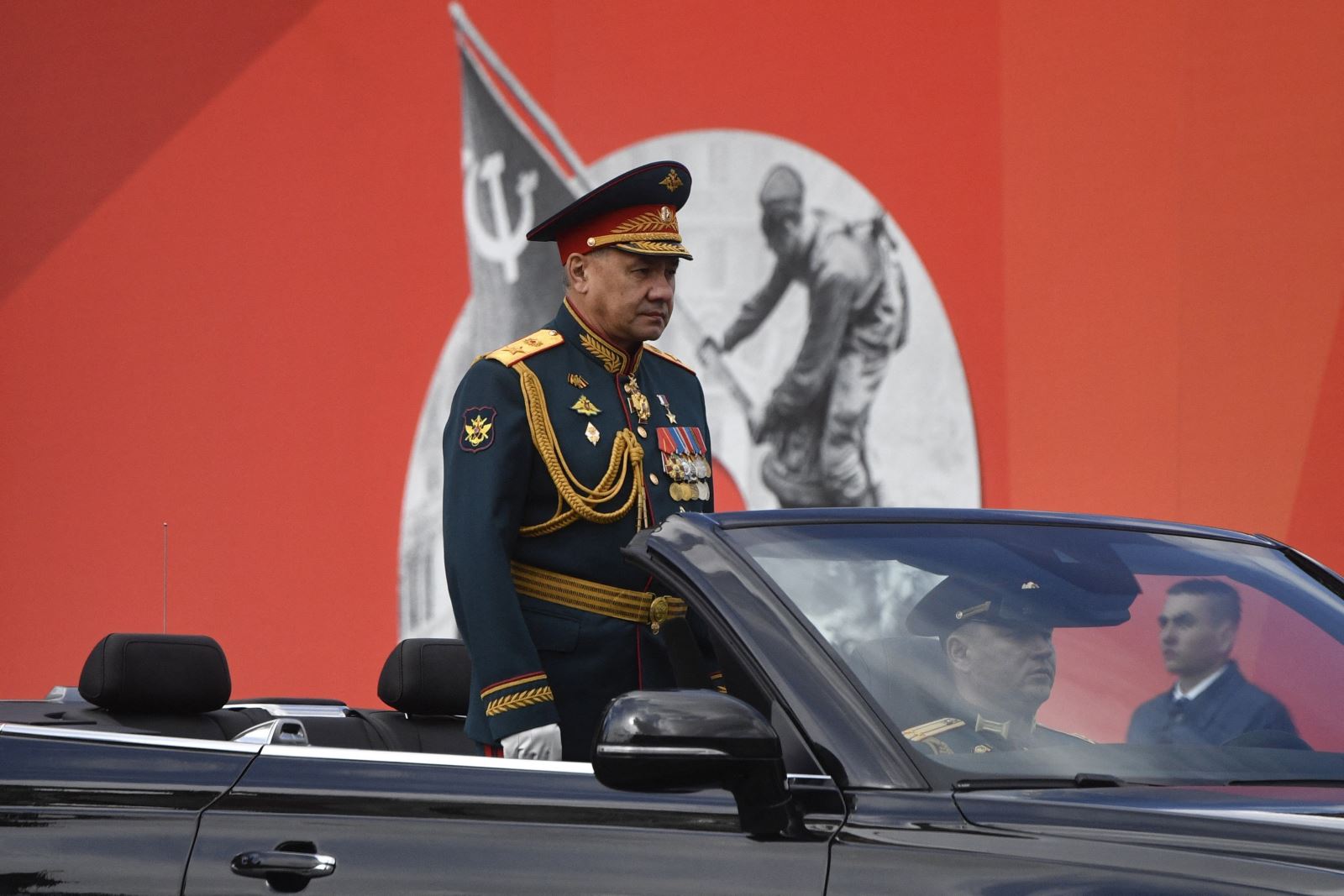 Bộ trưởng Quốc phòng Nga Sergei Shoigu duyệt đội hình tại lễ duyệt binh kỷ niệm 77 năm Chiến thắng phát xít (1945-2022), trên Quảng trường Đỏ ở thủ đô Moskva, ngày 9/5/2022.