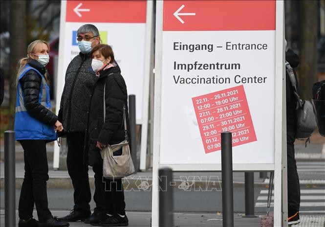 Người dân chờ tiêm vaccine phòng COVID-19 tại một trung tâm tiêm chủng ở Frankfurt, Đức ngày 25/11/2021.