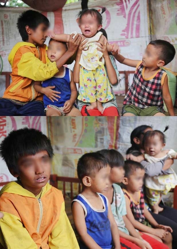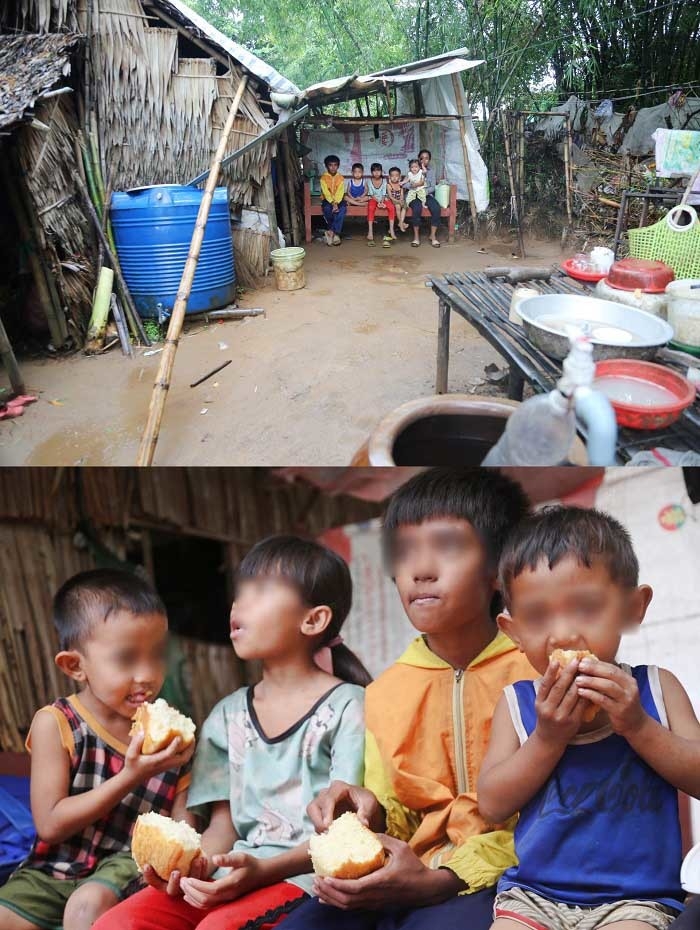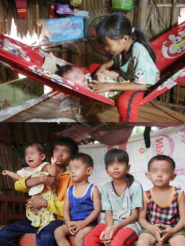 | Hình ảnh 5 đứa trẻ nheo nhóc trong căn chòi dột nát khiến ai nấy đều xót xa. (Ảnh: Trí Thức Trẻ) |