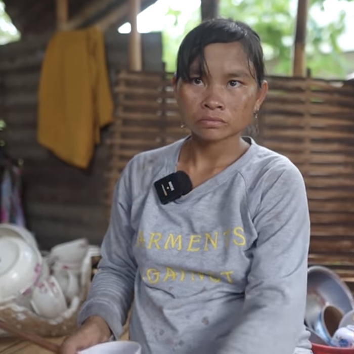 | Dù mới 26 tuổi nhưng người phụ nữ đã có 6 người con, gương mặt hằn lên sự khắc khổ. (Ảnh cắt từ clip YouTube Cú Đấm Thép TV) |