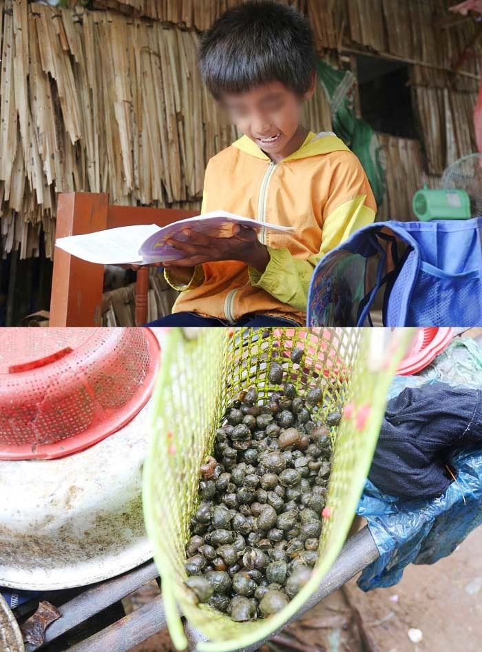 | Khi nào bố không có việc làm Minh lại phụ bố đi mò ốc về cho cả gia đình ăn qua bữa. (Ảnh: Trí Thức Trẻ) |