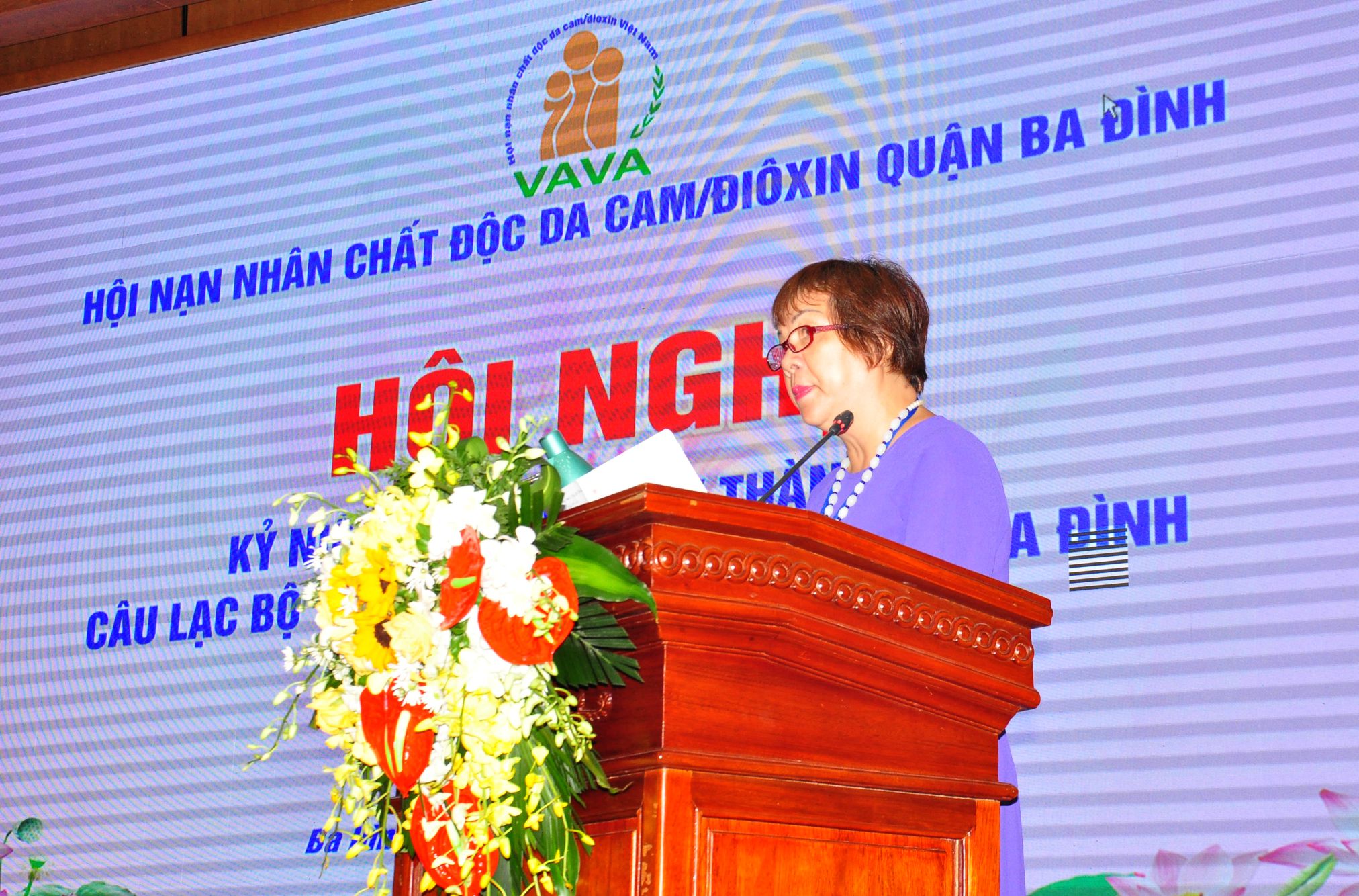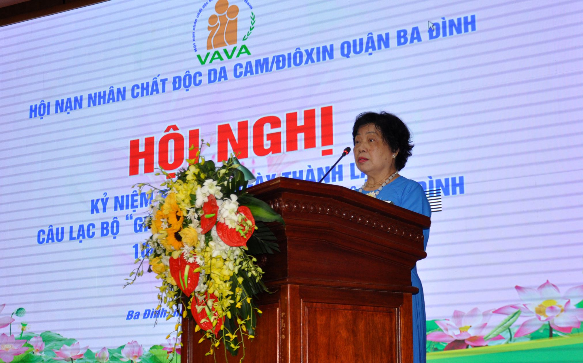 Bà Đinh Thị Giới, Chủ nhiệm CLB, Phó Chủ tịch Hội NNCĐDC/dioxin quận Ba Đình báo cáo kết quả hoạt động