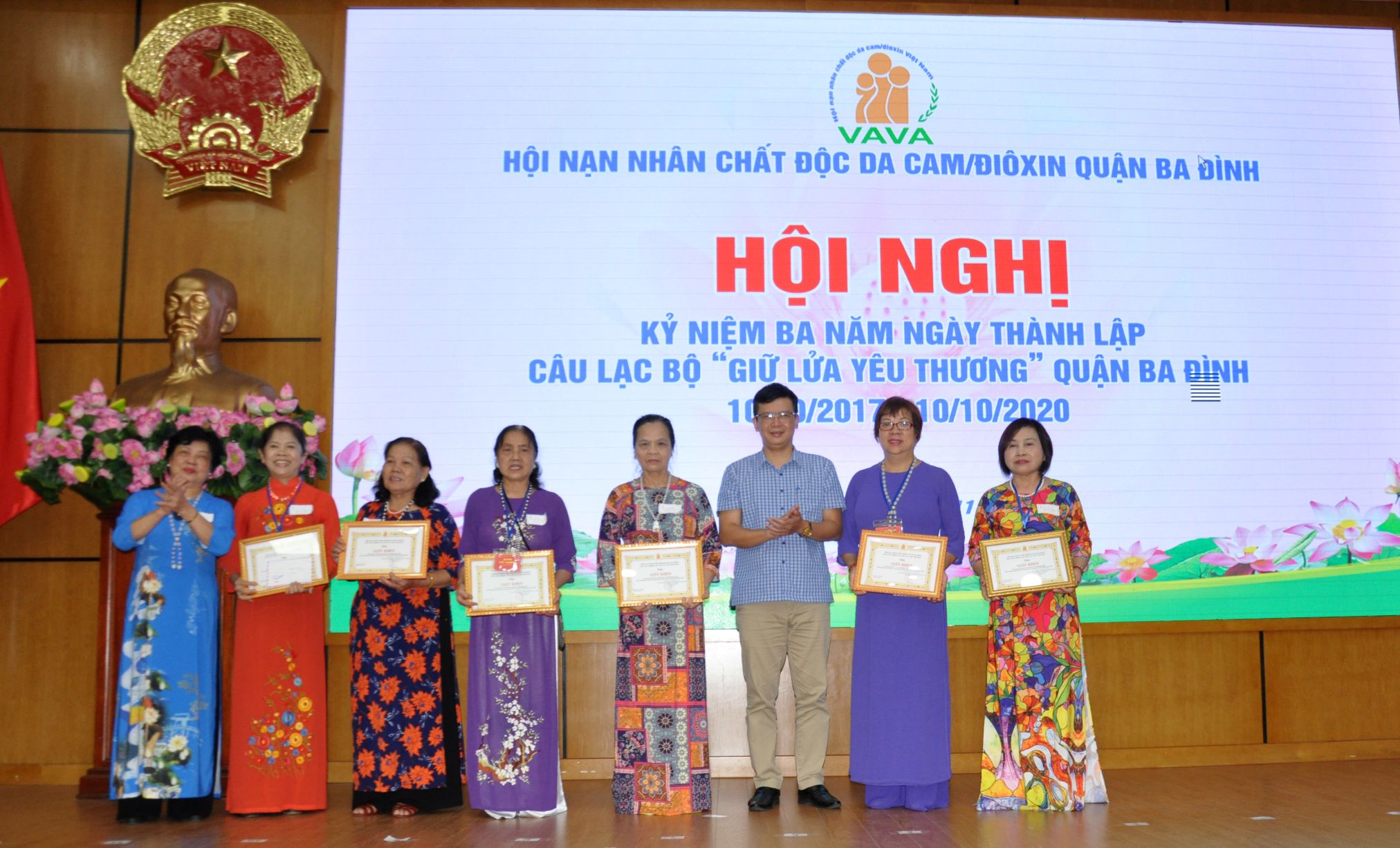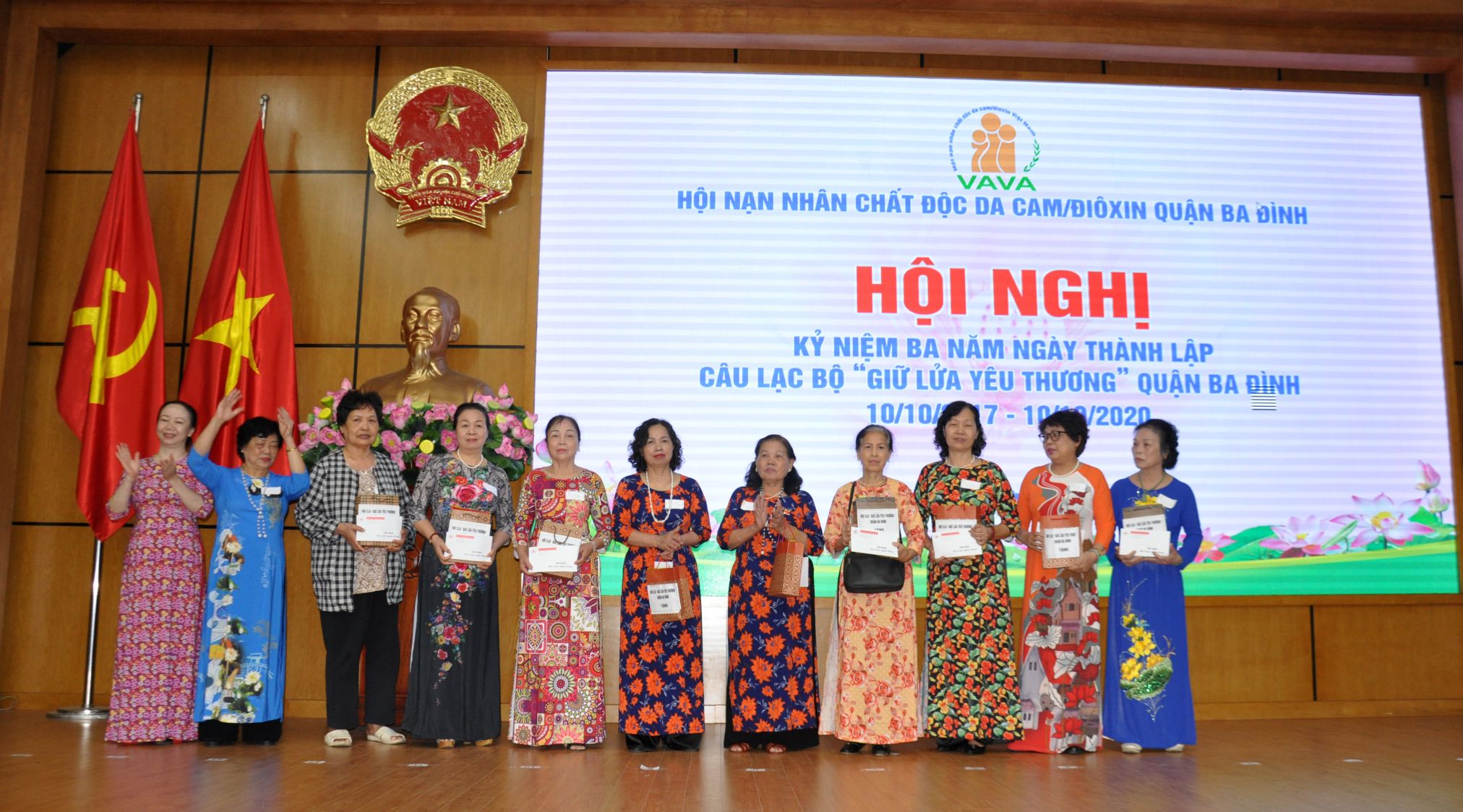 CLB "Giữ lửa yêu thương" được thành lập ngày 10/10/2017 do bà Đinh Thị Giới (Chủ tịch Hội quận Ba Đình) sáng lập, đồng thời làm Chủ nhiệm, CLB là nơi sinh hoạt của các bà là vợ, là mẹ của NNCĐDC quận Ba Đình. Ban đầu thành lập CLB chỉ có 52 hội viên, sau một năm số hội viên tăng lên 76 người, đến nay là 113 người. Trong đó, có 12 bà là NNCĐDC, 83 bà là vợ, là mẹ nạn nhân và 18 bà tuy không phải là vợ, là mẹ nạn nhân nhưng nặng lòng, cảm thông sâu sắc với NNCĐDC nên tự nguyện tham gia CLB. Do số lượng hội viên tăng, nên Ban chủ nhiệm CLB quyết định thành lập ở mỗi phường một tổ chức CLB trực thuộc sự lãnh đạo của Hội NNCĐDC/dioxin và Ban chủ nhiệm CLB của quận.