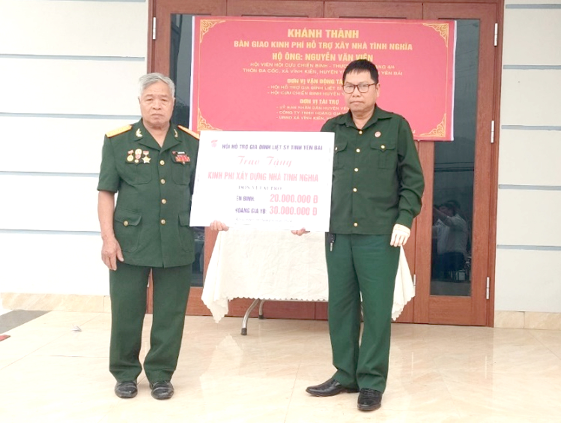 Đại diện các đơn vị, nhà tài trợ, Anh hùng Lao động, thương binh 1/4 Khổng Minh Quý, Chánh Văn phòng Hội Hỗ trợ gia đình liệt sỹ tỉnh Yên Bái đã trao 50.000.000đ cho gia đình ông Nguyễn Văn Viện trước sự chứng kiến cùng với niềm vui, hạnh phúc của gia đình và sự chung vui, chúc mừng của chính quyền, đoàn thể, bà con nhân dân xã Vĩnh Kiên và thôn Đa Cốc.