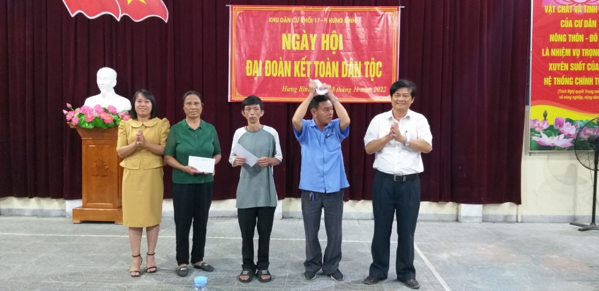 | Ông Trần Xuân Danh tặng quà NNCĐDC trong ngày "Đại đoàn kết toàn dân tộc" |