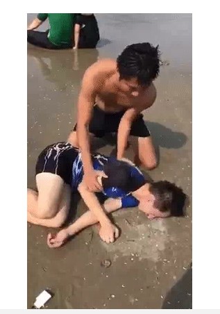 Trong đó, một mình người đàn ông đã lao xuống cứu được 3 người đưa vào bờ và nhanh chóng thực hiện các động tác sơ cứu tại chỗ.