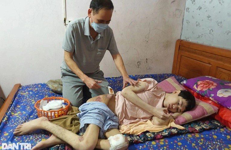 "Em nó bảo đã có lại được một chút cảm giác ở chân, nhưng không theo được ở bệnh viện, phải đưa em nó về nhà cầm cự bằng lá thuốc, tôi đau lòng lắm. Tôi có chuyên môn, và vệ sinh hàng ngày nhưng phần da thịt từ thắt lưng trở xuống của em nó vẫn bị hoại tử. Mỗi lần phải tự tay cắt lọc, rửa vết loét cho em nó mà tôi đau đớn như đang cắt da thịt của mình vậy… ", sau những động tác vệ sinh cho con rất thuần thục, người cha tội nghiệp lén quay mặt giấu đi đôi mắt đỏ hoe.