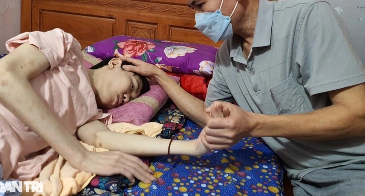 Gương mặt thiểu não, 2 cẳng chân như ống sậy chàng trai trẻ Vũ Đức Thái (SN 1999), trú ở khu Phượng Hùng 1, xã Chí Đám, huyện Đoan Hùng, tỉnh Phú Thọ nằm co quắp trên chiếc giường cũ kĩ trong căn phòng nhỏ thiếu ánh sáng. Nhìn cơ thể tiều tụy, teo tóp này thật khó ai có thể ngờ Thái vốn là chàng trai khỏe mạnh với chiều cao 1m70 và nặng hơn 60 kg.