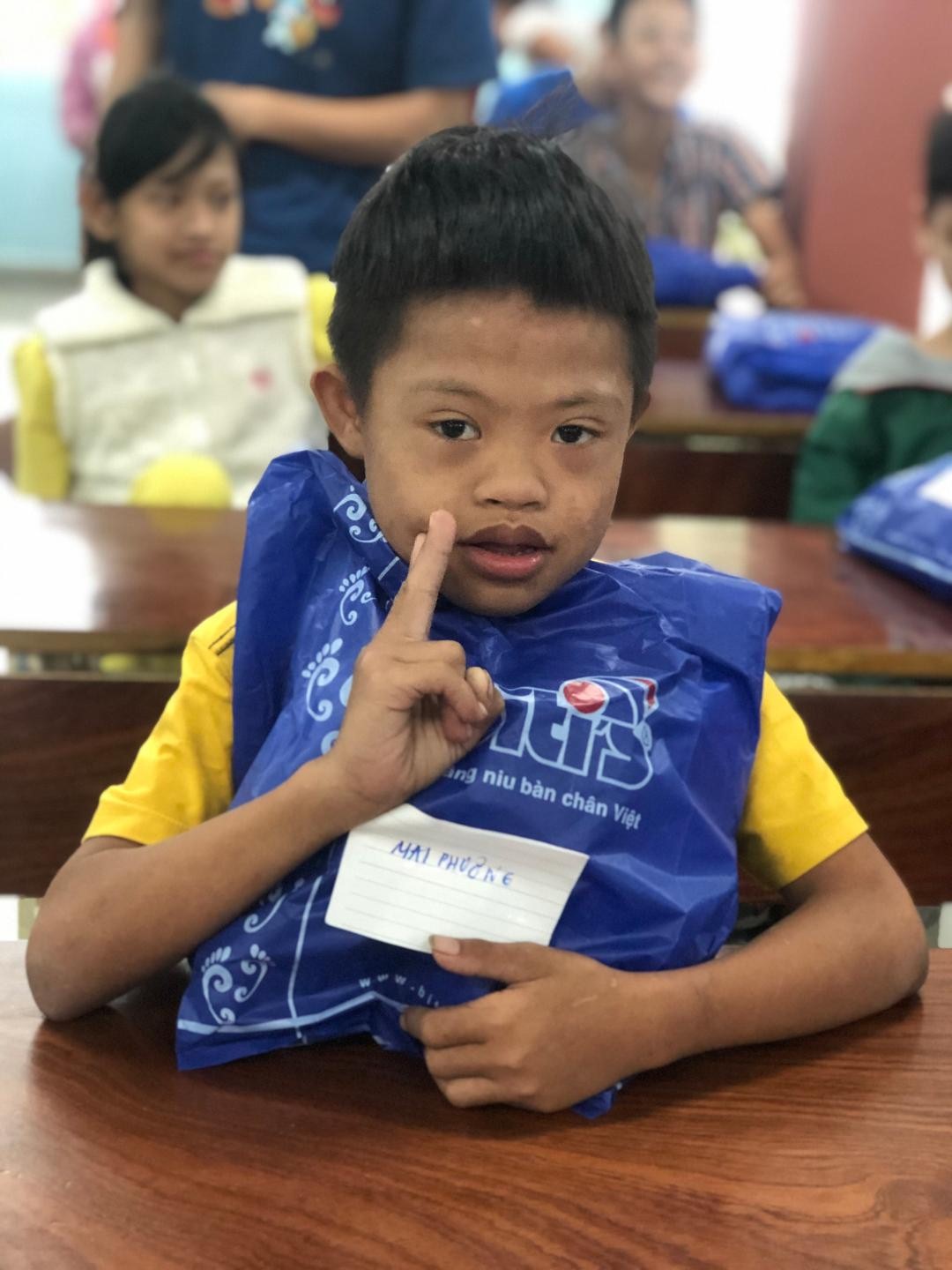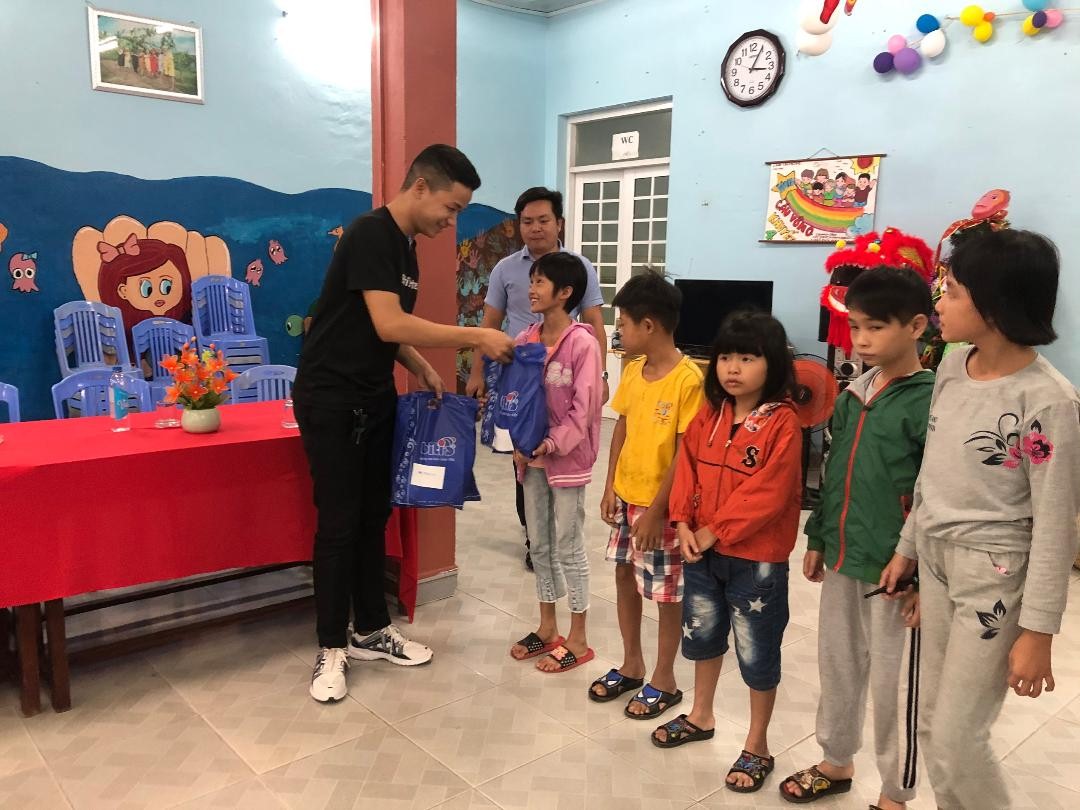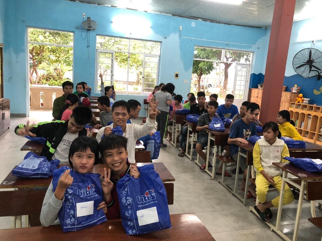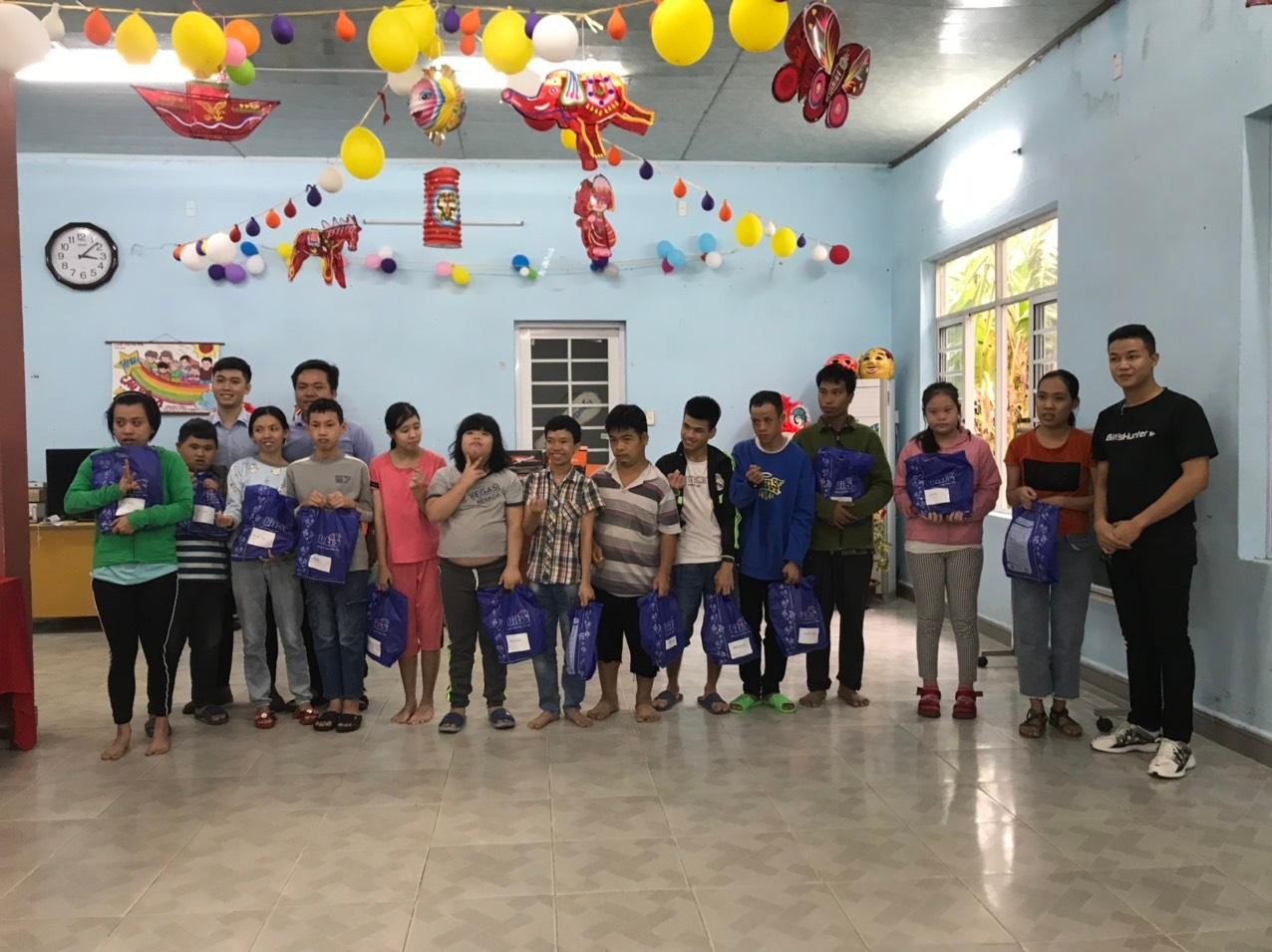 Niềm vui của các em NNCĐDC tại Trung tâm được nhận quà từ đơn vị tài trợ