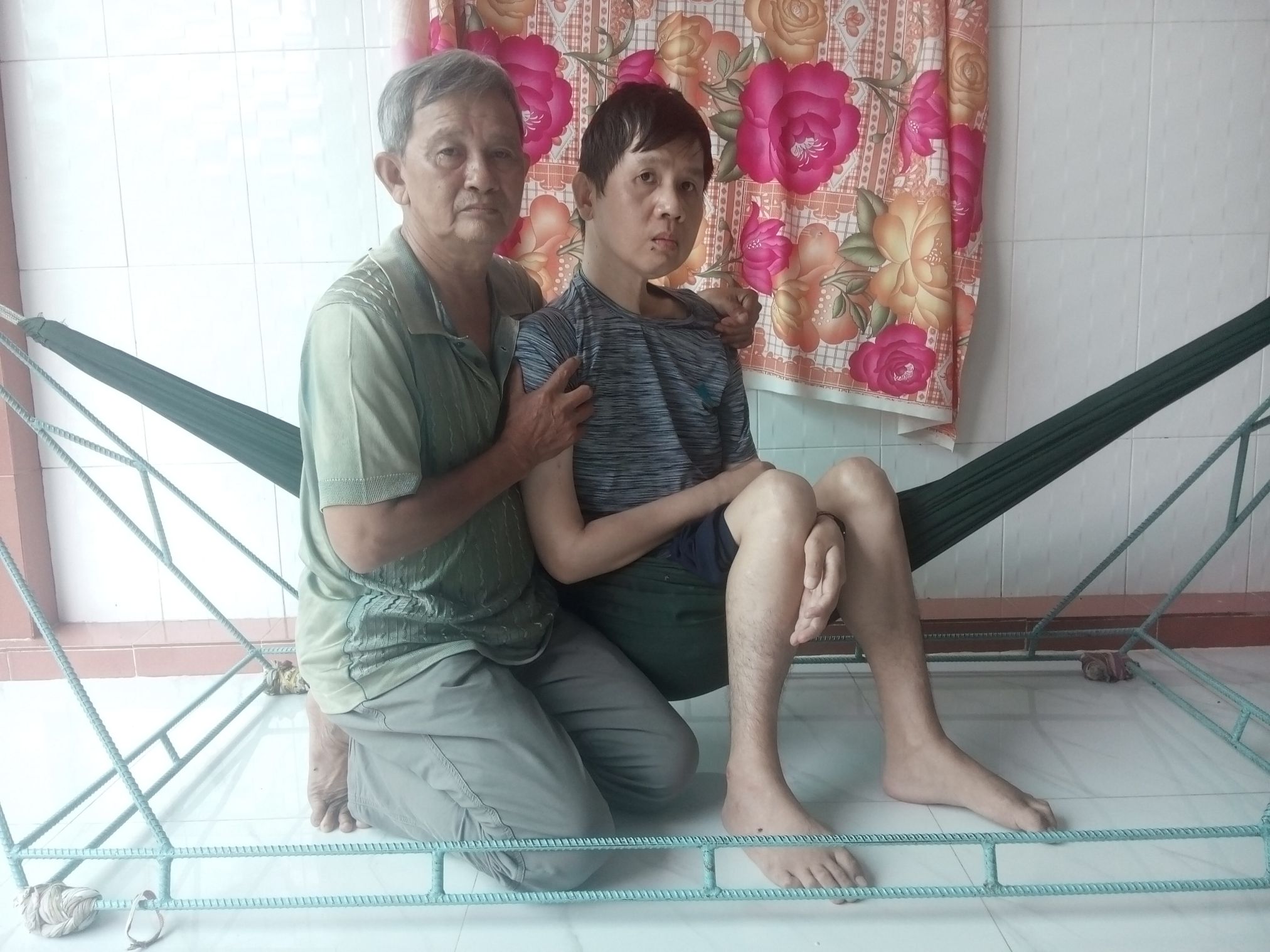Hỏi thăm về sức khỏe của ông và Duy Khánh, ông Cam nghẹn ngào nói: “Nhớ lại những năm tháng chiến tranh tôi là chiến sĩ giải phóng, vất vả là thế, hy sinh là thế nhưng tôi đâu có nặng nề, từ chối, ngày nay sức khỏe yếu chỉ chăm sóc, bê đỡ cho con ăn uống cũng đã mệt rồi. Mỗi lần nghe con rên rỉ, tim tôi đau nhói. Sức khỏe Duy Khánh thì như thế đó! Thật tôi không ngờ gia đình tôi lại lâm vào tình cảnh này. Rất may mắn được sự quan tâm của Hội NNCĐDC/dioxin huyện Châu Thành và Chi hội xã Phước Tân Hưng tận tình giúp đỡ cả về tinh thần lẫn vật chất như: tiền, gạo, thực phẩm nên chúng tôi phần nào đỡ vất vả trong cuộc sống. Tôi nhớ mãi hình ảnh bà Chủ tịch Hội tỉnh Long An đến Châu Thành trao quà cho NNCĐDC trong đợt dịch Covid-19. Sự có mặt của bà, lòng chúng tôi như ấm lại và vững tin trong cuộc sống. Với mức phụ cấp hàng tháng, tuy không nhiều nhưng cũng chia sẻ được nỗi đau của NNCĐDC chúng tôi. Xin cảm ơn Hội NNCĐDC/dioxin huyện Châu Thành và Chi hội xã Phước Tân Hưng thăm hỏi ân cần trong những lúc khó khăn và các dịp lễ tết, ngày 10/8. Đây chính là nguồn động viên tinh thần để giúp nạn nhân chúng tôi cố gắng vươn lên hòa nhập cộng đồng”.