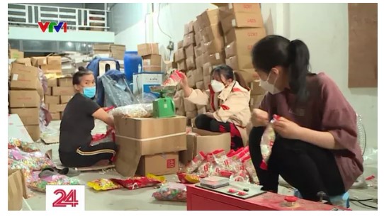 Mặc dù sản xuất bánh kẹo nhưng tại thời điểm kiểm tra, chủ cơ sở không xuất trình được bất cứ giấy tờ nào liên quan để chứng minh cơ sở sản xuất đủ điều kiện an toàn thực phẩm. Ngoài số bánh kẹo có dấu hiệu là hàng giả, cơ quan chức năng còn thu giữ hàng tấn bánh kẹo nhập lậu có nguồn gốc xuất xứ từ Trung Quốc không đủ điều kiện lưu hành trên thị trường đang được tập kết tại 2 khu xưởng này.