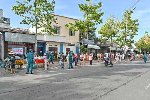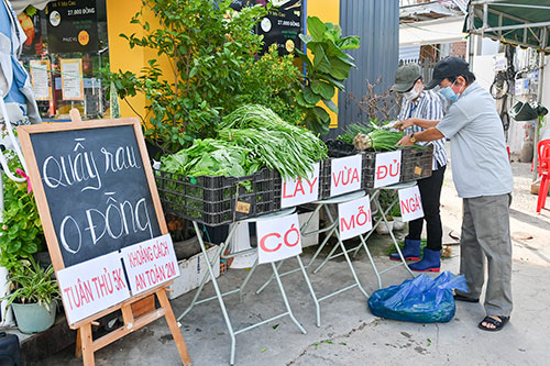 Người dân 2 phường được phát phiếu đi chợ, mua sắm theo ngày chẵn, lẻ. Khu chợ có khoảng 10 gian hàng, kinh doanh các mặt hàng thịt, cá, trứng, rau củ quả, thực phẩm khô… để phục vụ người dân trong khu vực. Bên cạnh đó, các nhóm thiện nguyện cũng đưa những gian hàng rau 0 đồng đến đường Tôn Đức Thắng phục vụ người dân.