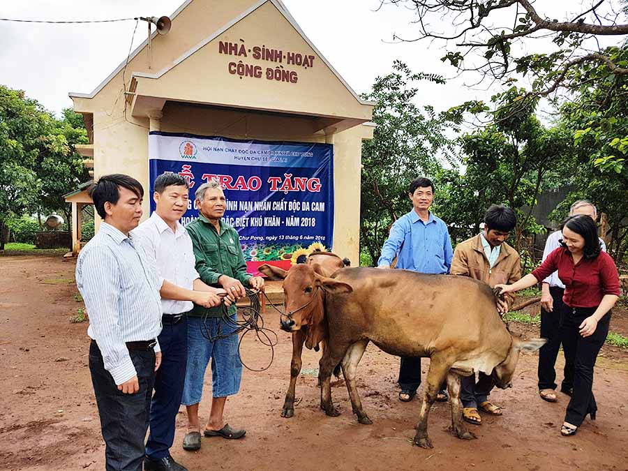 Giúp các NNCĐDC và gia đình có việc làm, có kế sinh nhai luôn là nỗi trăn trở của những người làm công tác Hội. Được các cấp, các ngành quan tâm, từ năm 2011 đến nay, 47 gia đình NNCĐDC được Hội hỗ trợ bò sinh sản để chăn nuôi. Nhờ vậy, hơn chục hộ đã thoát nghèo.