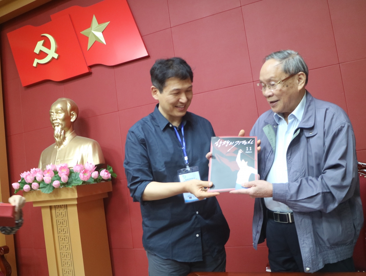 | Ông Lee Sanghun tặng sách Hội thảo cho Chủ tịch Nguyễn Văn Rinh |