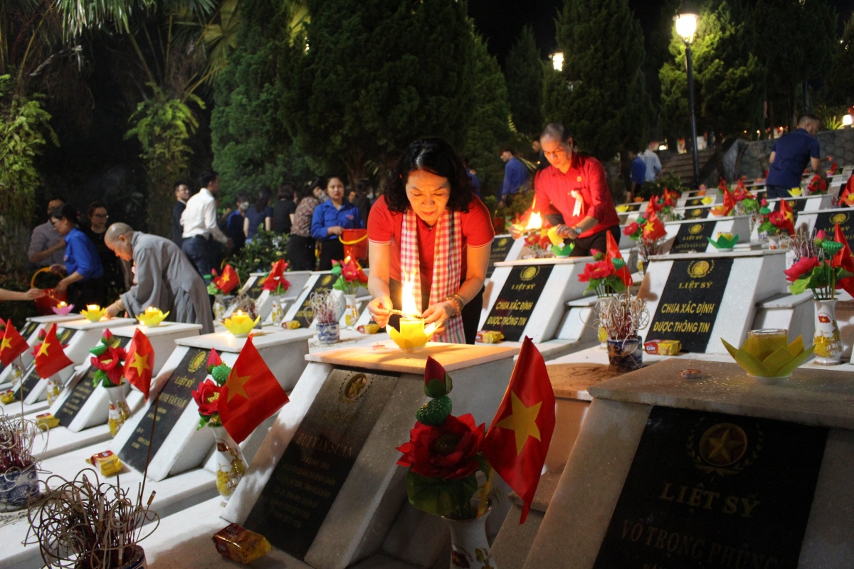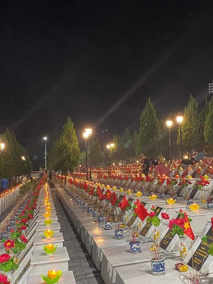 | Nghĩa trang liệt sĩ Quốc gia Vị Xuyên rực sáng lung linh bởi hàng nghìn ngọn nến |