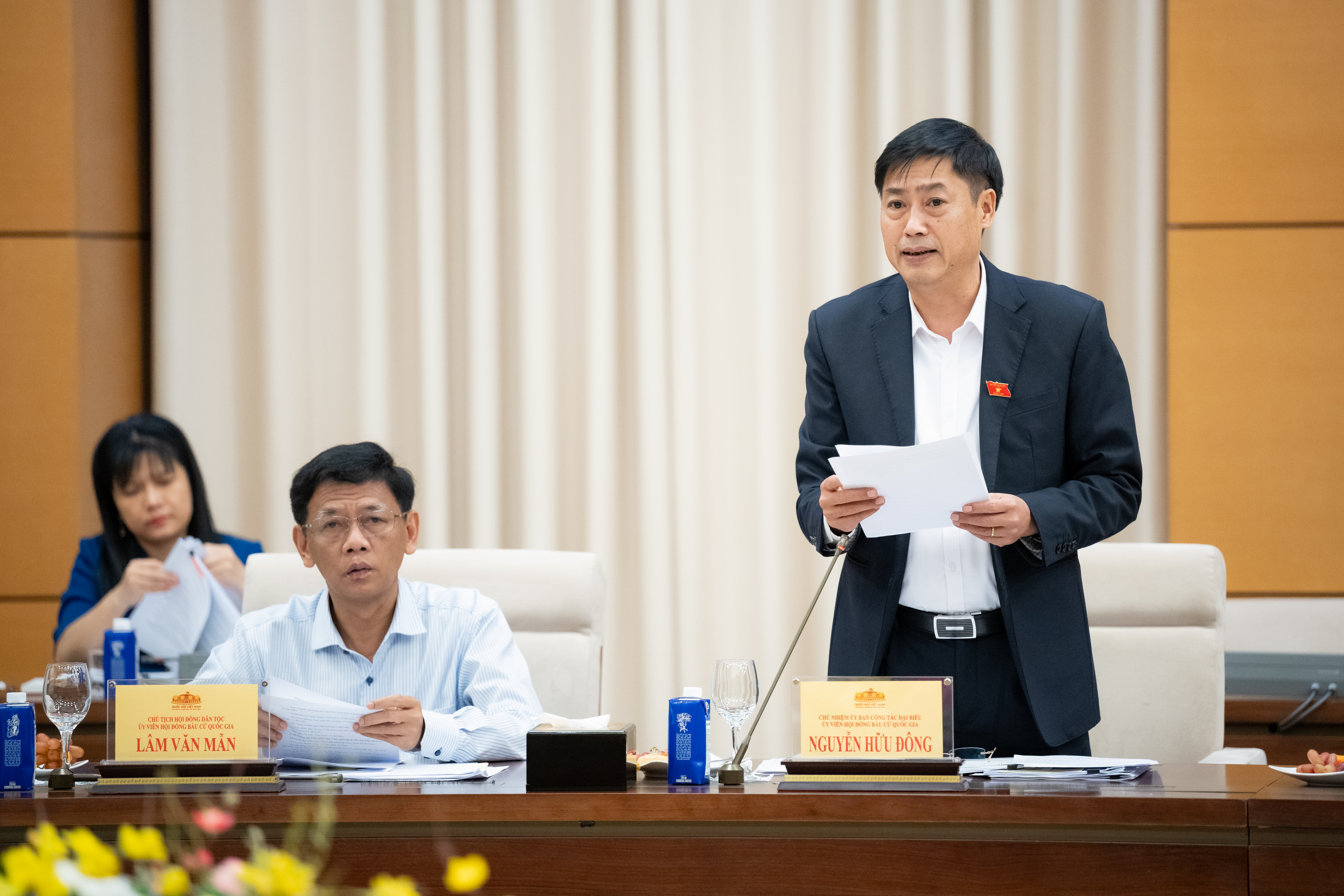 Chủ nhiệm Ủy ban Công tác đại biểu Nguyễn Hữu Đông, Ủy viên Hội đồng Bầu cử quốc gia báo cáo kết quả về dự kiến số lượng, cơ cấu thành phần đại biểu Quốc hội khóa 16; Tờ trình về việc điều chỉnh phân công nhiệm vụ một số thành viên của Hội đồng bầu cử quốc gia.