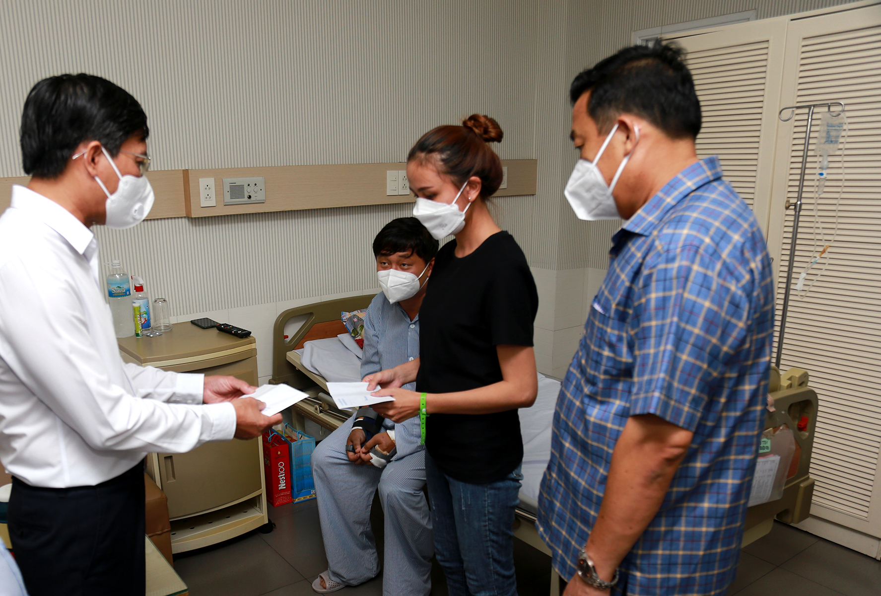 Tối 29/7, Chủ tịch UBND tỉnh - Lê Tuấn Phong cùng lãnh đạo Công an tỉnh, Văn phòng UBND tỉnh đã đến thăm hỏi, động viên Đại úy Phạm Huy Hòa, cán bộ Đội Cảnh sát giao thông Công an huyện Tánh Linh bị thương khi làm nhiệm vụ, đang điều trị tại Bệnh viện Đa khoa An Phước.