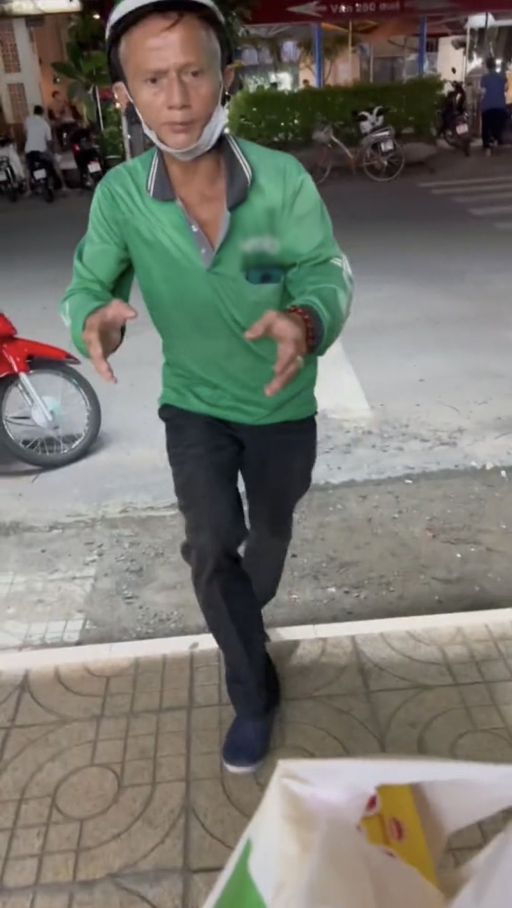 | Thấy khách định gọi xe, người đàn ông chạy vội ra mời để kiếm thêm chút tiền. (Ảnh: Chụp màn hình TikTok L.L.) |