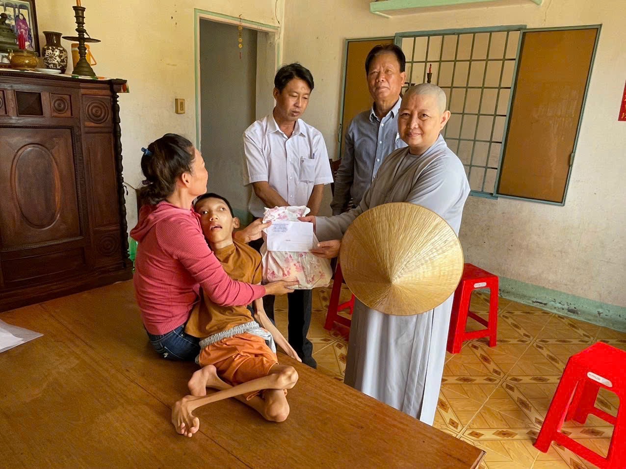 Nhận hỗ trợ kinh phí nuôi dưỡng thường xuyên 05 nạn nhân chất độc da cam của Ni sư Thích Nữ huệ Hiếu trụ trì Chùa Long Hoa thật đáng trân trọng!