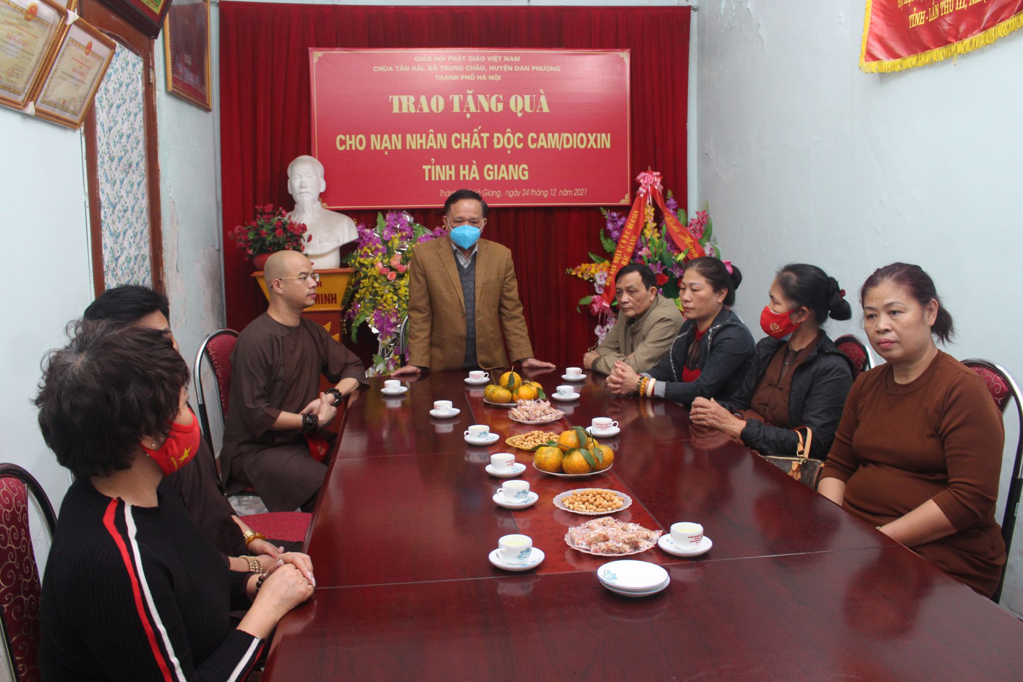 Nhân kỷ niệm 77 năm ngày thành lập Quân đội Nhân dân Việt Nam (22/12/1944 - 22/12/2021) và hưởng ứng thư kêu gọi của Hội nạn nhân chất độc da cam/dioxin tỉnh Hà Giang về giúp đỡ hỗ trợ tặng quà cho các nạn nhân chất độc da cam trên địa bàn tỉnh trong dịp tết Nguyên Đán Nhâm Dần năm 2022. Chùa Tân Hải thuộc làng Phương Ngoại, xã Trung Châu, huyện Đan Phượng, thành phố Hà Nội đã vận động các tăng ni phật tử và các nhà hảo tâm quyên góp tặng quà cho các nạn nhân chất độc da cam, những hộ nghèo và các cháu học sinh trên địa bàn huyện Vị Xuyên, tỉnh Hà Giang. Ngày 24 và 25/12/2021 đoàn đã tặng tổng số: 250 suất quà, 2.000 sách vở, quần áo học sinh với trị giá 320 triệu đồng.