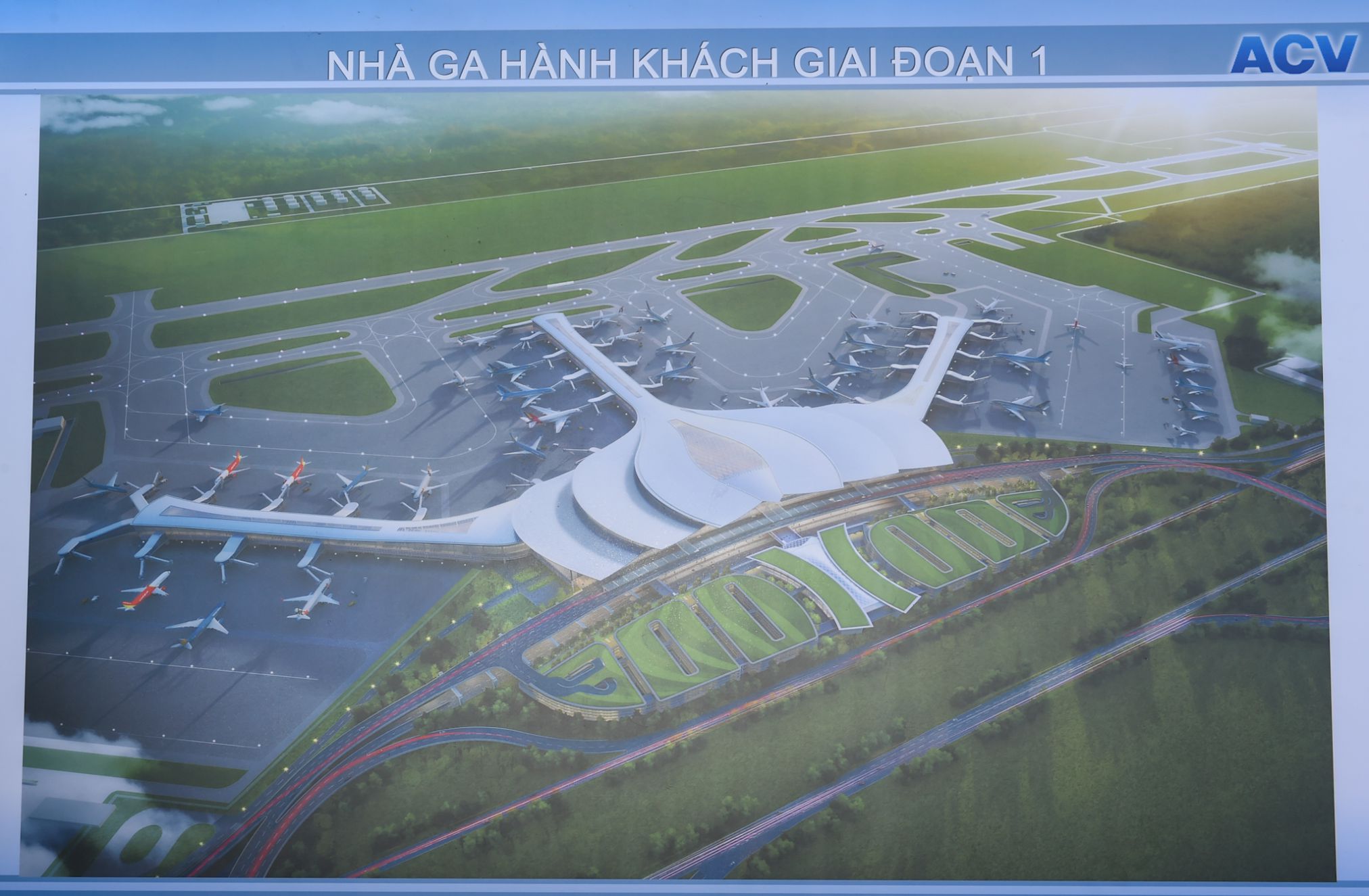 Phối cảnh nhà ga hành khách sân bay Long Thành giai đoạn 1. Dự án thành phần 3 - các công trình thiết yếu trong cảng hàng không do nhà đầu tư khai thác cảng thực hiện được giao cho Tổng Công ty Cảng hàng không Việt Nam – CTCP (ACV) làm chủ đầu tư bằng nguồn vốn của ACV. - Ảnh: VGP/Quang Hiếu