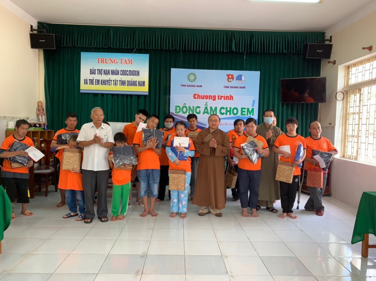 Đặc biệt, chào mừng thành công Đại hội lần thứ 19 của Tỉnh đoàn và lần thứ 6 của Giáo hội Phật giáo tỉnh Quảng Nam, chiều ngày 07/11/2022, Hòa thượng Thích Phước Minh, Trưởng ban Trị sự phật giáo tỉnh Quảng Nam và ông Hoàng Văn Thanh, Phó Bí thư Tỉnh đoàn, Chủ tịch Liên hiệp thanh niên tỉnh, 2 tổ chức đã phối hợp đến thăm và tặng 50 suất quà cho nạn nhân và TEKT tại Trung tâm, mỗi suất quà là 2.300.000đồng (trong đó 2 triệu đồng tiền mặt, 300.000 tiền quà, trong đó có 1 cái áo “Đông ấm cho em”.
