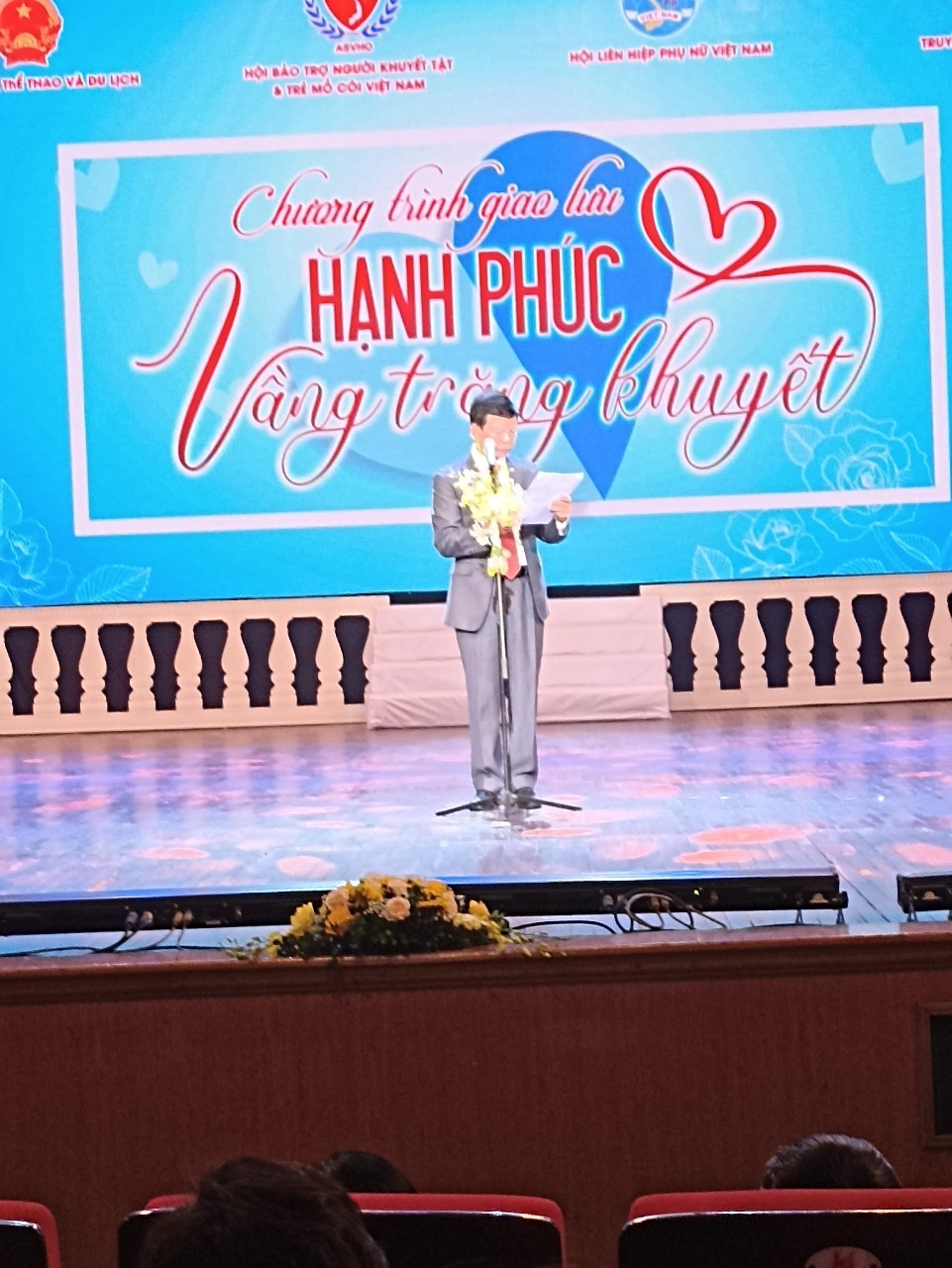 Ông Nguyễn Trọng Đàm, Chủ tịch Hội Bảo trợ người khuyết tật và trẻ mồ côi Việt Nam phát biểu khai mạc chương trình: Hội Bảo trợ người khuyết tật và trẻ mồ côi Việt Nam phối hợp với Hội Liên hiệp Phụ nữ Việt Nam, Bộ Văn hóa, Thể thao và Du lịch, Truyền hình Quốc hội Việt Nam tổ chức chương trình “Hạnh phúc vợ chồng người khuyết tật” lần thứ IV với chủ đề “Hạnh phúc Vầng trăng khuyết”.