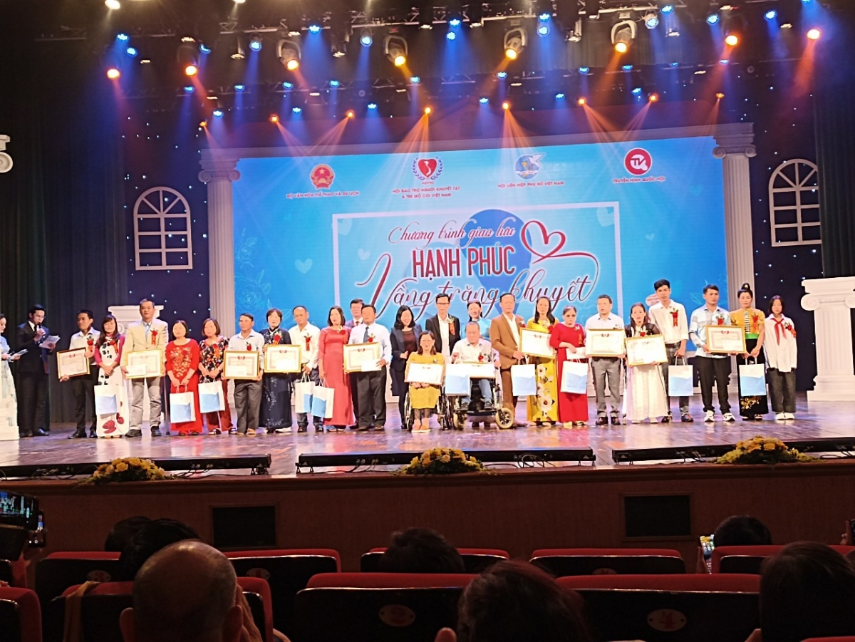 Ban tổ chức đã khen thưởng và tặng quà cho các cặp vợ chồng khuyết tật tiêu biểu về thành tích vượt khó vươn lên, gìn giữ hạnh phúc gia đình.