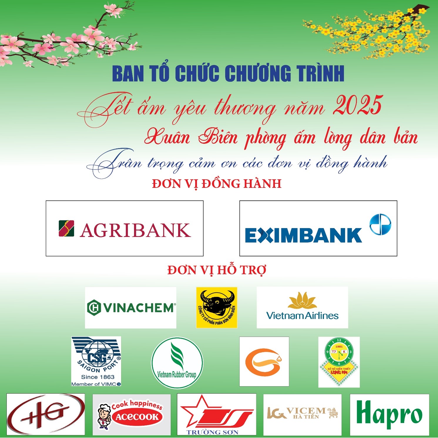 Ban Tổ chức Chương trình xin chân thành cảm ơn sự đóng góp của các nhà hảo tâm và các đơn vị hỗ trợ chương trình, hy vọng trong thời gian tới, sẽ tiếp tục nhận được sự ủng hộ của cộng đồng.