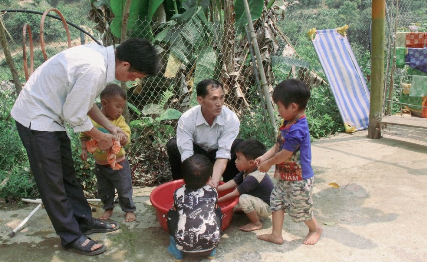 Là đàn ông, nhưng hai thầy chẳng nề hà việc gì. Từ chải tóc, tết tóc, cho ăn, vệ sinh cá nhân cho trẻ, chăm chút trong từng miếng ăn. Có thể giọng hát của các thầy kém phần mượt mà hơn các cô, hay đôi tay múa cũng không được mềm mại, nhưng đến với lớp học của thầy Chu và thầy Pha, tiếng hát luôn cất vang, điệu múa luôn vui nhộn, rộn rã.