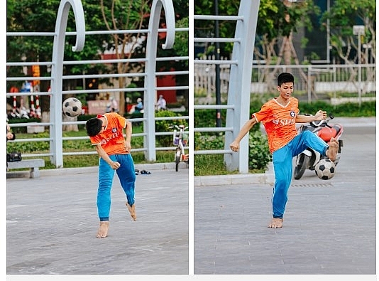 | Niềm vui của cậu bạn là những buổi chiều cùng đá bóng với lũ trẻ con trên sân làng. Ảnh: 16 Memories |