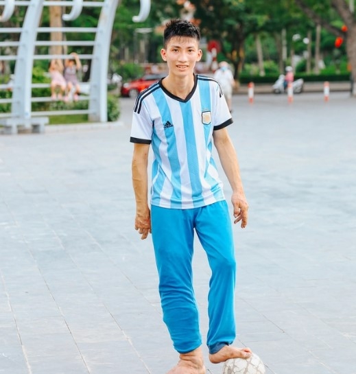 “Em tên là Hoàng. Hoàng trong hoàng đế”, là cách cậu bạn tự tin giới thiệu về bản thân mình. Được biết, Phạm Minh Hoàng sinh năm 2002, hiện đang sinh sống ở quận Ngô Quyền, TP Hải Phòng. Cậu bạn định nghĩa đôi chân ngoại cỡ của mình bằng cái tên bệnh chân voi do chất độc màu da cam.