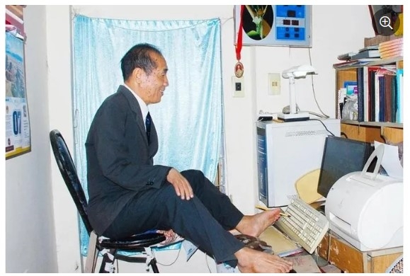 | Với đôi chân, thầy giáo Nguyễn Ngọc Ký có thể làm được mọi việc. |