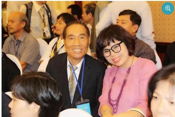 | Nhà văn Bình Nguyên Trang chụp ảnh cùng người thầy đáng kính. |