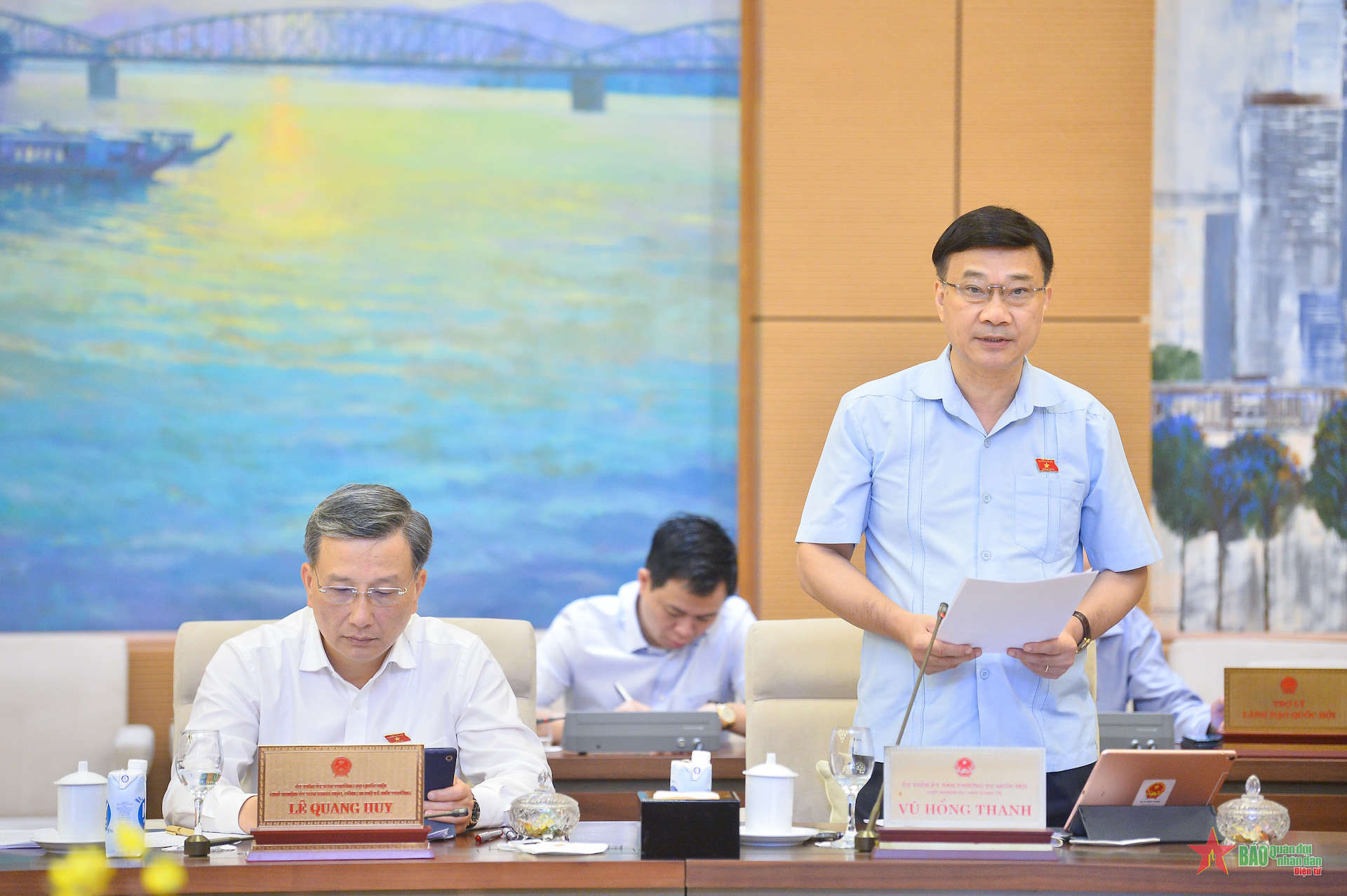 | Chủ nhiệm Ủy ban Kinh tế Vũ Hồng Thanh trình bày báo cáo thẩm tra. |